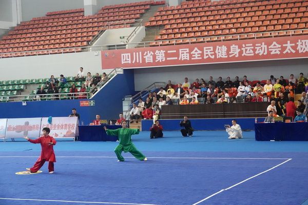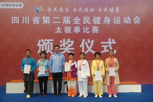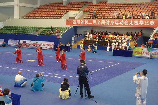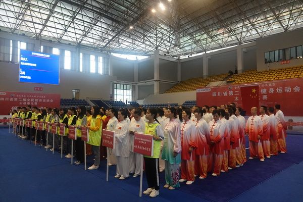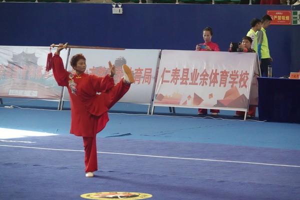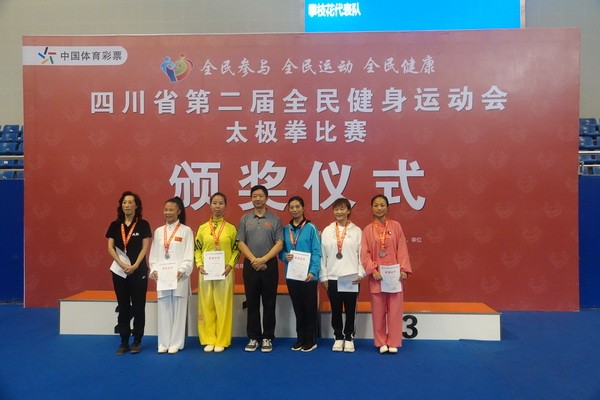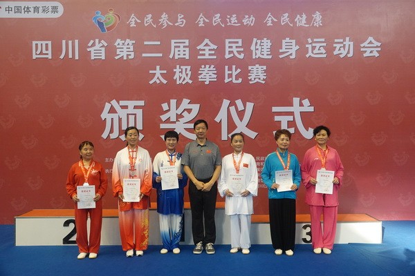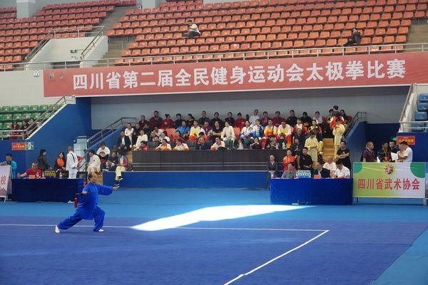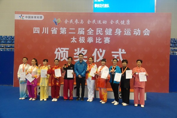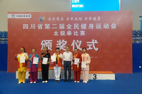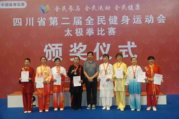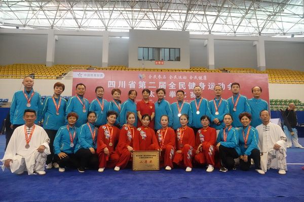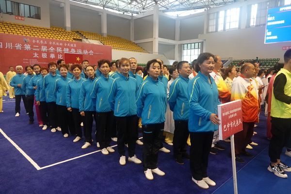 10月13日,四川省第二届全民健身运动会太极拳比赛在眉山市仁寿县体育馆落幕。来自全省17个市(州)代表团共计300余人参加本届全民健身运动会。我会受市教育和体育局委托,组队代表巴中市参赛的26名运动员,分别参加了个人项目的男子、女子甲、乙组的陈、杨、吴、武、孙、42式太极拳(剑)国家规定竞赛套路及男、女集体项目的全部单项比赛,经过三天的顽强拚搏,荣获个人项目一等奖1个、二等奖8个、三等奖14个、优胜奖2个,荣获集体项目二等奖1个、优胜奖1个,3人荣获体育道德风尚奖。本次赛事由副会长李碧芳担任领队(兼运动员),副会长兼秘书长郝玉玲担任教练,参加本次运动会的正副会长共九人。