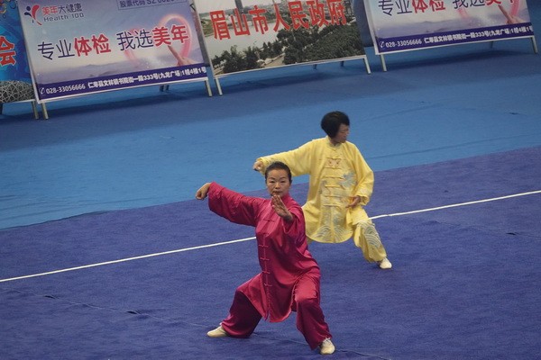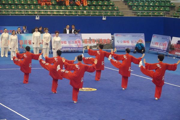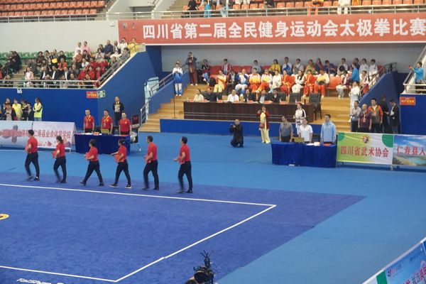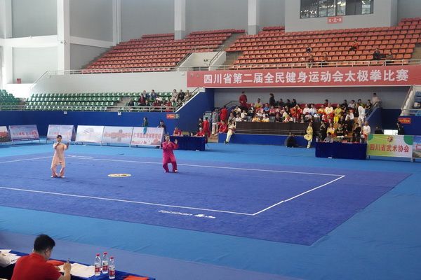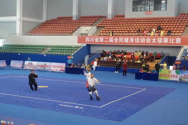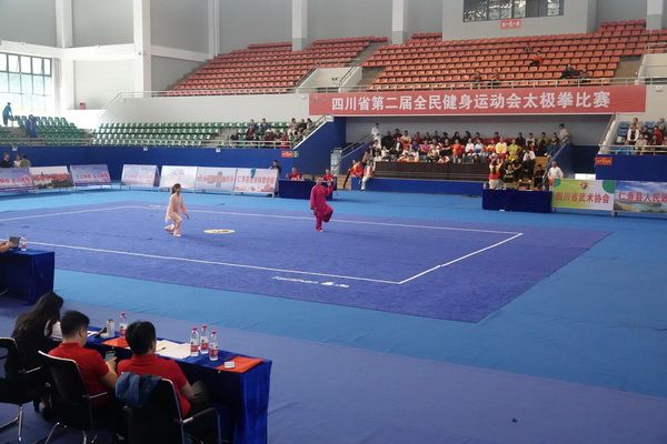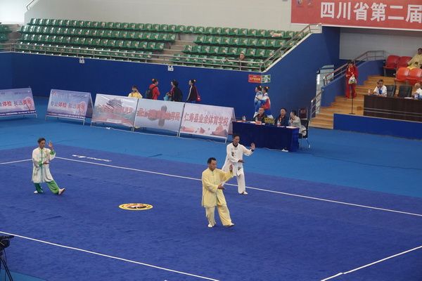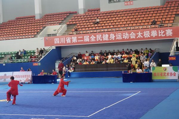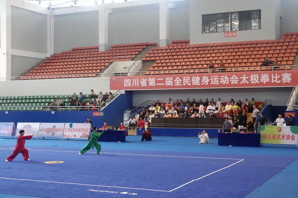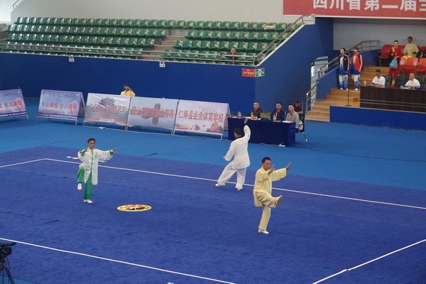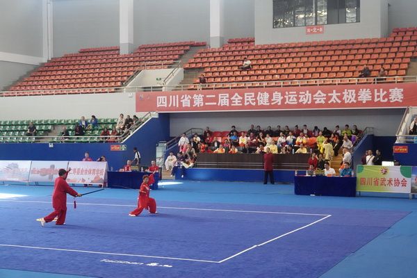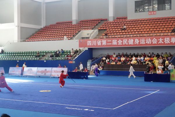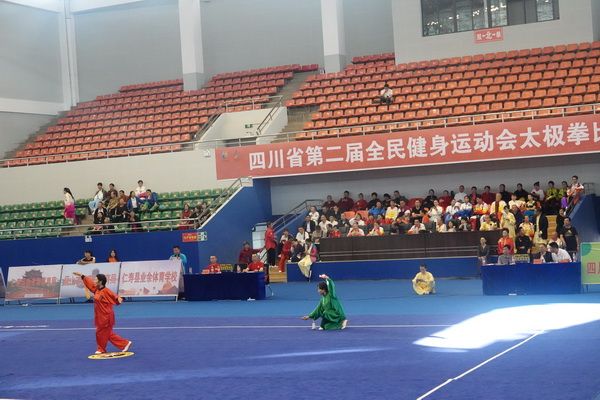10月13日,四川省第二届全民健身运动会太极拳比赛在眉山市仁寿县体育馆落幕。来自全省17个市(州)代表团共计300余人参加本届全民健身运动会。我会受市教育和体育局委托,组队代表巴中市参赛的26名运动员,分别参加了个人项目的男子、女子甲、乙组的陈、杨、吴、武、孙、42式太极拳(剑)国家规定竞赛套路及男、女集体项目的全部单项比赛,经过三天的顽强拚搏,荣获个人项目一等奖1个、二等奖8个、三等奖14个、优胜奖2个,荣获集体项目二等奖1个、优胜奖1个,3人荣获体育道德风尚奖。本次赛事由副会长李碧芳担任领队(兼运动员),副会长兼秘书长郝玉玲担任教练,参加本次运动会的正副会长共九人。