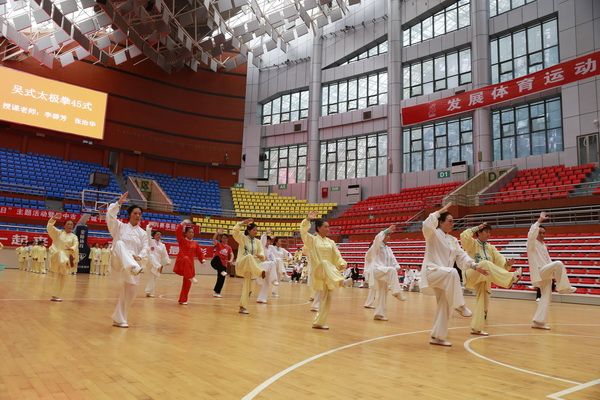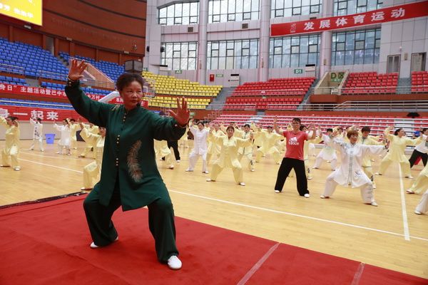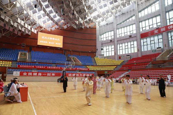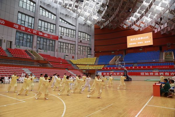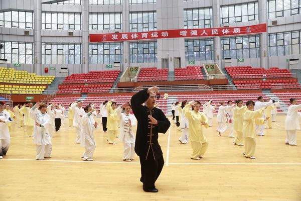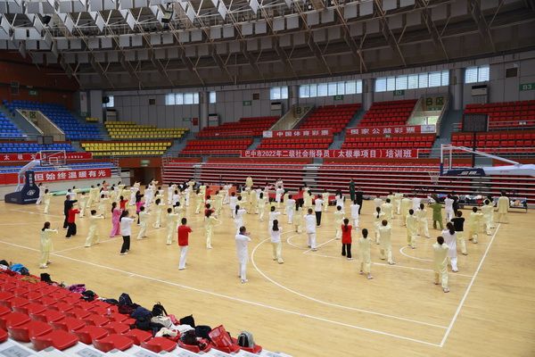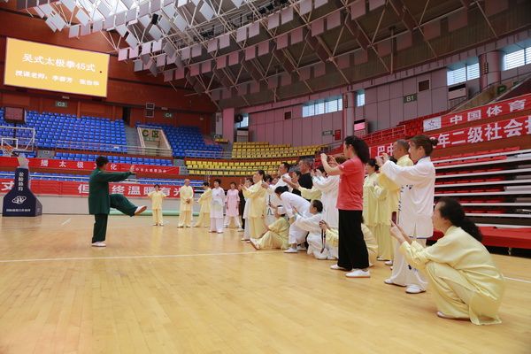 9月28日中国武术六段、武术套路国家一级裁判、四川省一级社会体育指导员、四川省传统武术套路教练、副会长(兼秘书长)郝玉玲及中国武术六段庞芝烈老师在市体育馆对《武式太极拳46式》竞赛套路进行了八个学时的分解教学,培训结束后进行了分组考试。