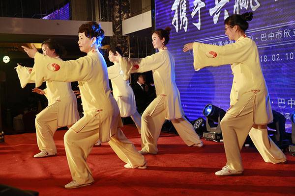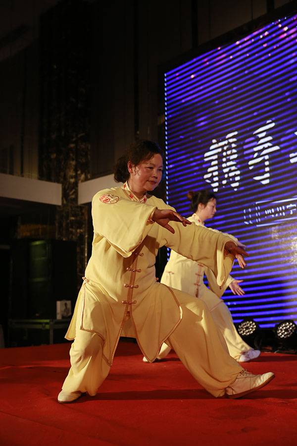 2月10日,我会直属二队、十一队(北宸天骄太极队)部分队员在会长刘云太的召集下,共聚天越岷山饭店,借欣立房产和宇亿置业新春年会之机,向与会的两百余名嘉宾演练了42式太极拳。队员们精湛的技艺和一丝不苟的演练,获得了观众的阵阵喝彩,太极文化与企业文化达到了完美融合,探索了太极进企业的新形式。