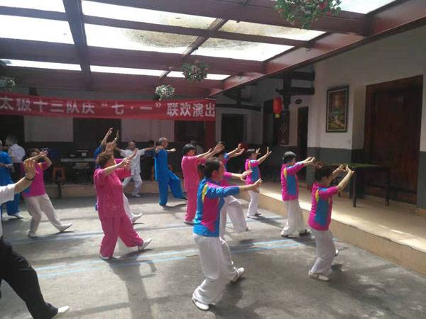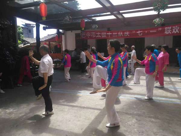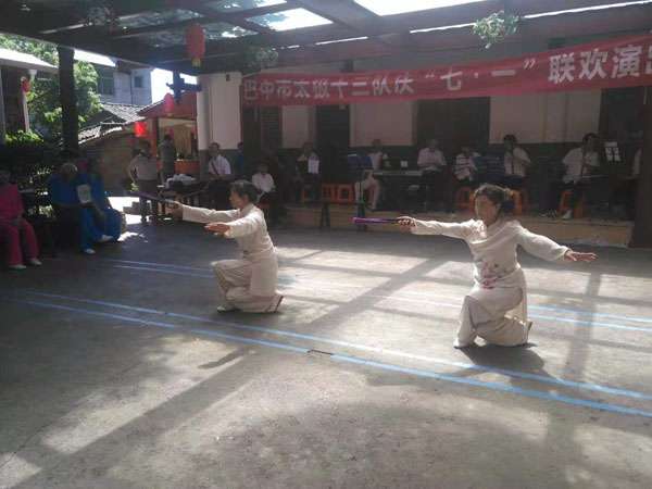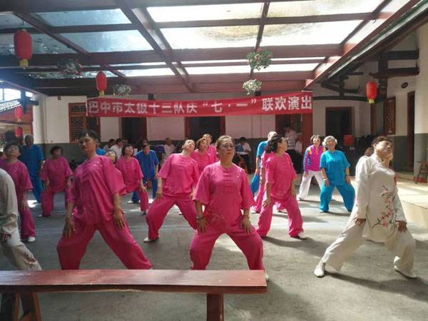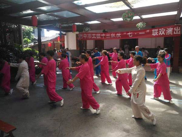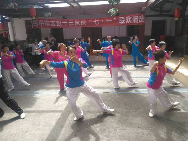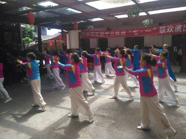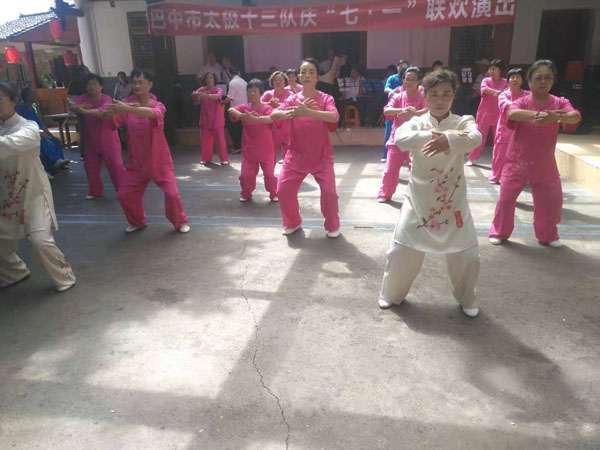 会员们载歌载舞,合唱了《没有共产党就没有新中国》、《社会主义好》、器乐合奏了《唱支山歌给党听》、表演了歌伴舞《我们的生活充满阳光》等文艺节目,并展演了24式太极拳、八法五步、健身气功《八段锦》、中华通络操、桃花太极扇、42式太极剑、杨式28式太极拳等十多个节目,用他们的方式表达拥护党的领导、不忘党恩、感恩社会的心愿。巴州区电视台作了宣传报道。