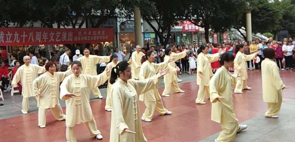 十八队的会员演练了八式太极拳,会员们认真专注的表演,获得了观众朋友的一致好评和热烈的掌声,展示了十八队全体会员的风采,传播了正能量。