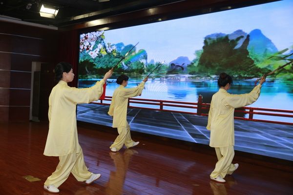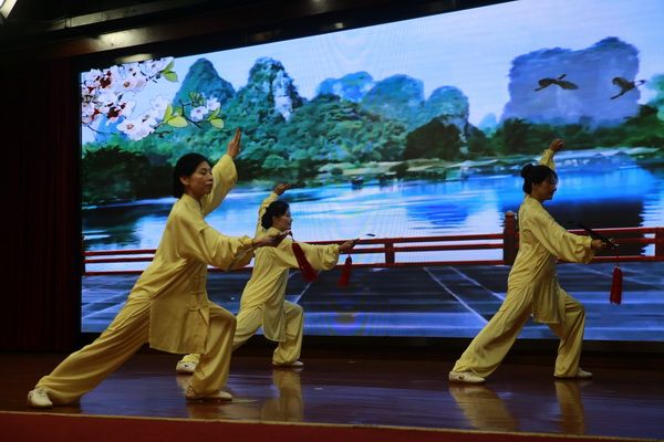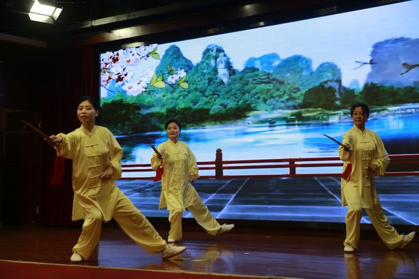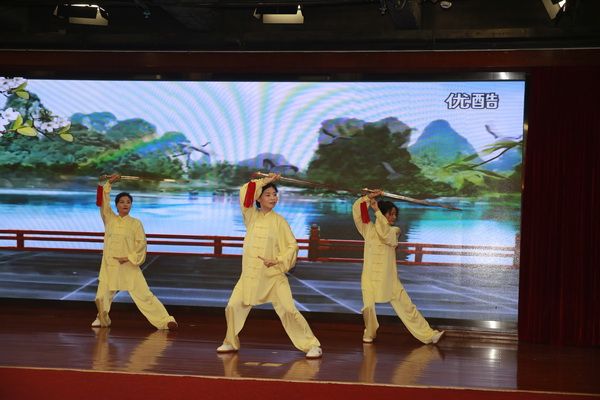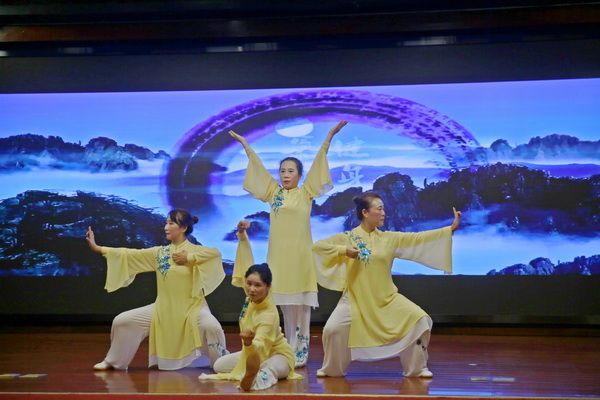 随后,新、老会员以太极为情感互通的桥梁,先后演练了太极拳、剑、扇、健身气功等,并穿插了舞蹈、旗袍秀、葫芦丝独奏、古筝齐奏、独唱、表演唱等节目,充分展示了我会直属五队充满活力、多才多艺、和谐团结的团队精神。