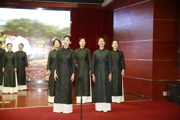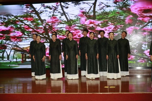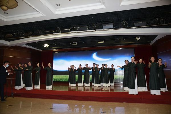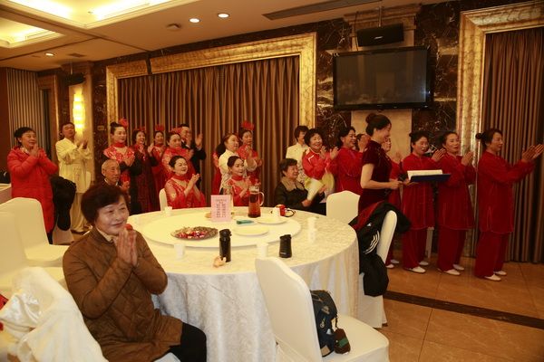 在我会常务副会长饶华女士的指挥下,全体会员热情洋溢地演唱了《唱支山歌给党听》,表达大家的爱党爱国之情。