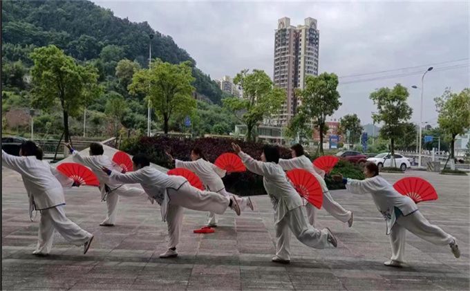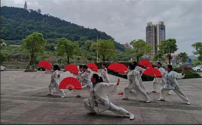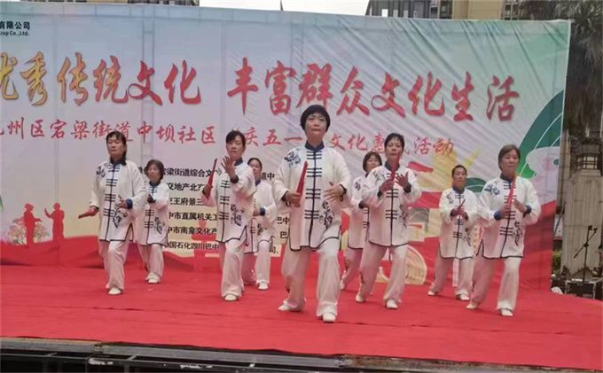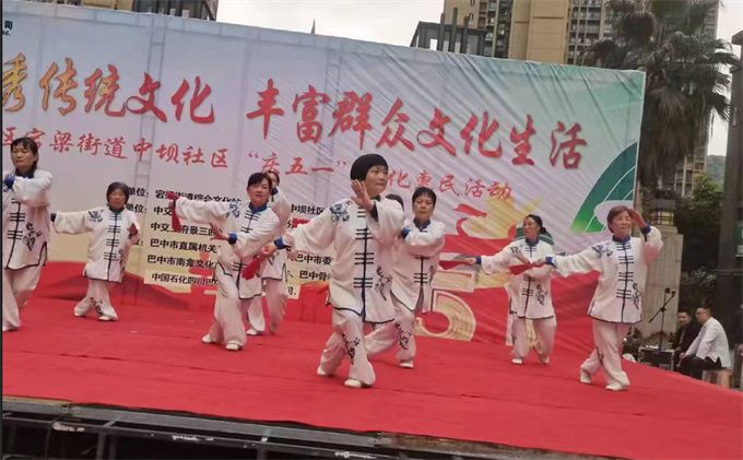 2023年5.1劳动节前夕,巴州区宕梁街道中坝社区在中交王府景太阳广场开展了“庆五一”文化惠民活动。巴中市太极拳协会直属二十一队受邀参加了此次活动,表演了杨式太极扇73式。
