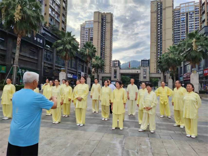 七月四日早晨,巴中中交王府景太阳广场风和日丽。巴中市太极拳协会刘会长、段佳林副会长和陈式太极拳辅导站站长聂春容老师一行来到这里看望巴中市太极拳协会直属二十一队队员,指导太极拳习练活动。