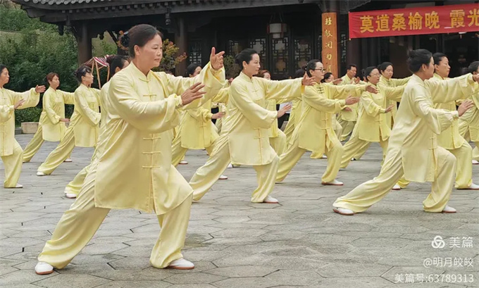 武术表演环节无疑是整场活动的重头戏。从舒展大方的传统杨式太极拳,再到刚猛爆发、松活弹抖的陈式太极拳,不同流派的太极瑰宝同台竞艳。刚柔并济的《28式太极扇》动作规范整齐,扇声铿锵有力,32式太极剑与42式太极剑的表演者舞动长剑,剑影翩跹,尽显中华武术的博大精深。