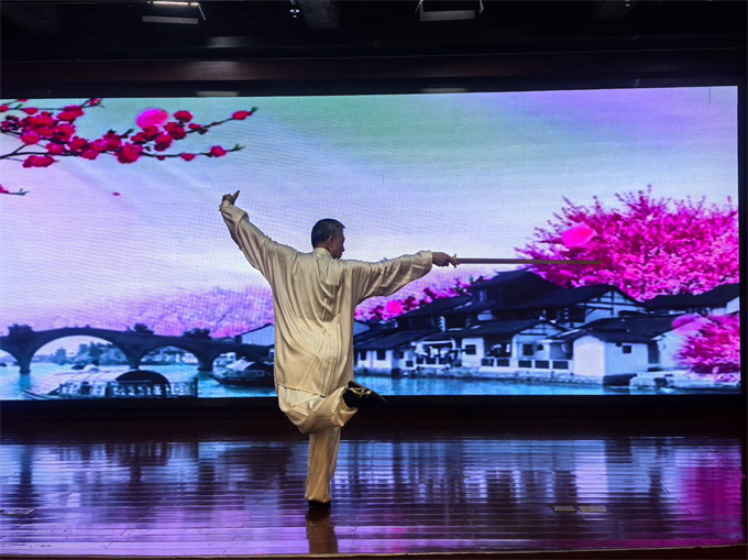 张龙吉老师表演的桃花太极剑,剑若游龙,灵动潇洒。