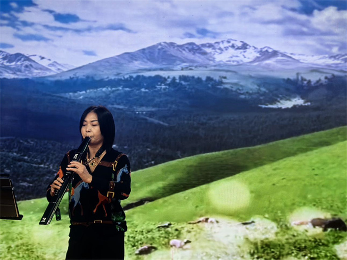 队员周兰电吹管独奏的《美丽的草原我的家》悠扬动听。