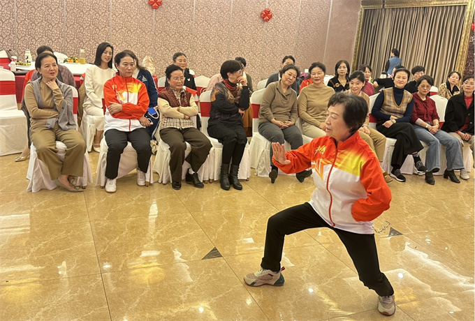 在市太极拳协会常务副会长饶华和市太极拳协会桃花太极辅导站站长张龙吉的指导下,市太极拳协会十二队队长杨冬梅、副队长张春蓉带领全体队员,11月1日在恒丰饭店开展庆重阳太极文艺展演活动,活动将太极展演与现场教学相结合,将文艺表演与尊老敬老相结合,不仅展示了太极传统文化的特殊魅力,还体现了敬老爱老、健康养老的重阳理念。