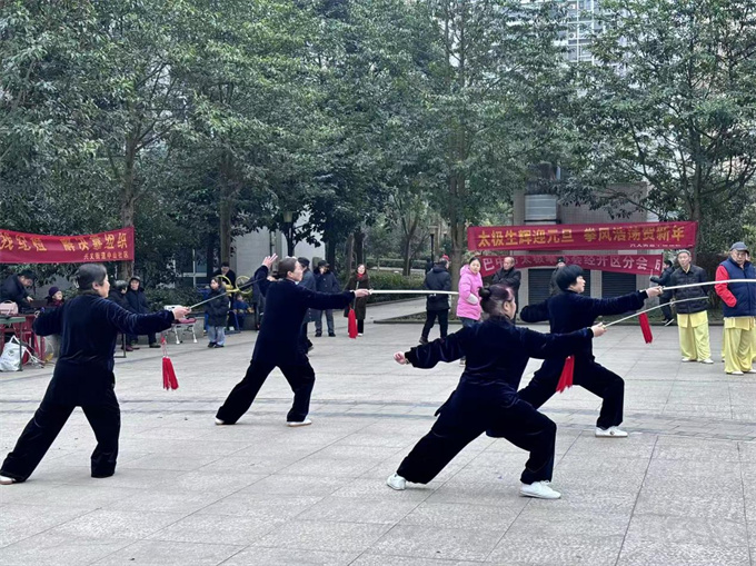 2025 年 12 月 27 日,巴中市太极拳协会经开区分会携手经开区太极一、二、三队,于东锦苑中山社区广场共同举办元旦庆祝活动,喜迎佳节。