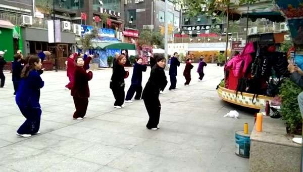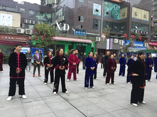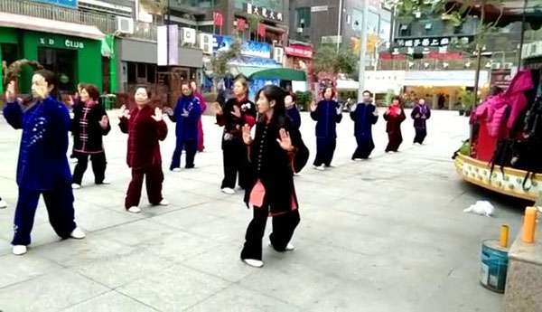 两位老师和大家打过招呼后就带领大家一起先练习了健身气功《八段锦》。