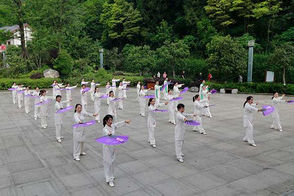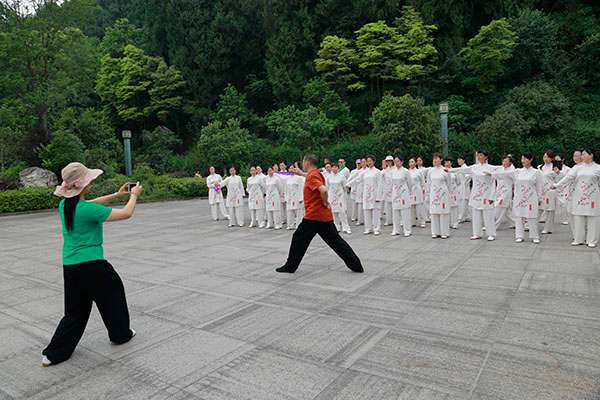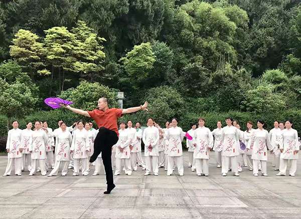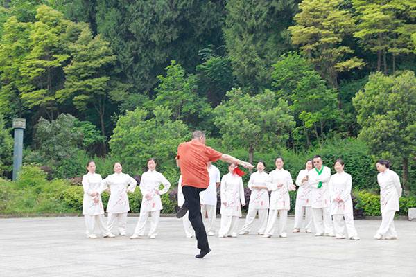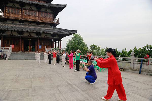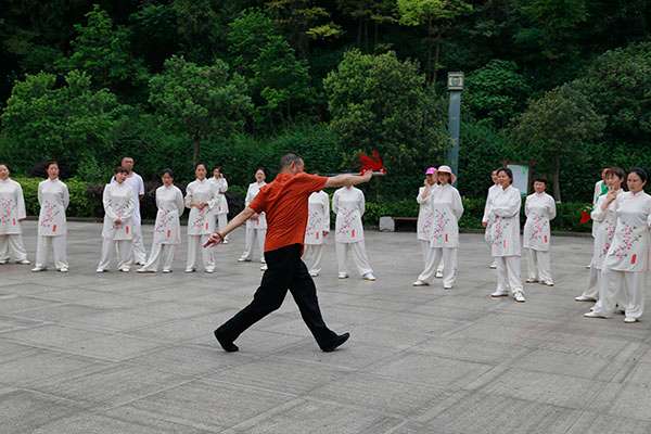 5月29日早晨,蒋勇老师还对桃花太极辅导站部分学员演练的桃花太极拳、扇、剑进行了点评、辅导和互动交流,进一步规范了动作规格。