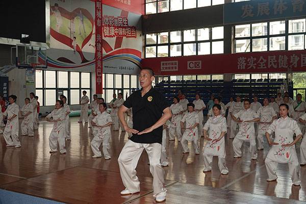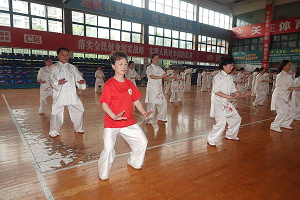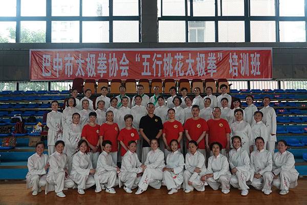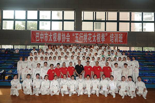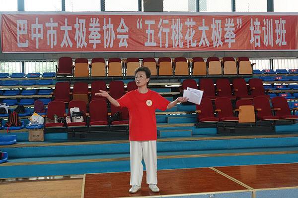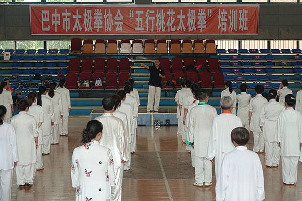 巴中市太极拳协会“五行桃花太极拳培训”于5月30日正式开班,《太极拳理论知识讲座》、“五行桃花太极拳”两个培训项目,上、下午分别在天越岷山饭店七楼、市青少年综合训练馆二楼举行。我会各直属队的120余名学员参加了培训,在家的常务副会长饶华及副会长李碧芳、王珍敏、王喜琼、苟毅、朱荣宗、陈韵芳出席并参训。学习结束经考核合格,给每位参训学员颁发了结业证书。