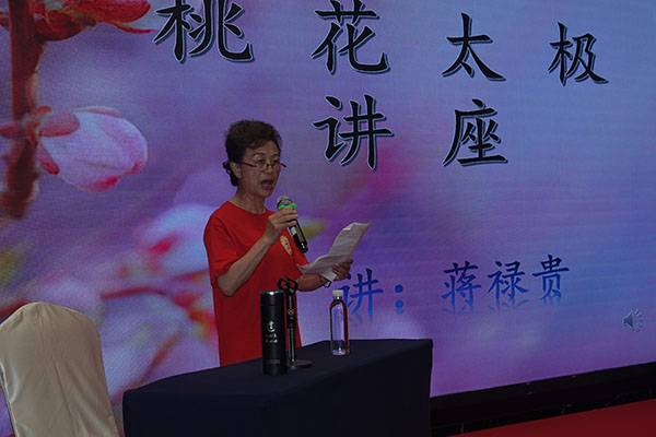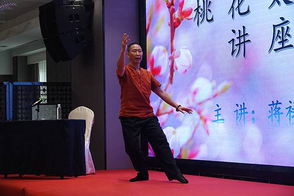 本次培训由四川省武术名家、2019年中国太极拳最具影响人物获得者、中国武术七段、国家一级武术教练、国际太极拳文化传播大使、四川武术协会桃花太极研究会会长、成都理工大学体育学院客座教授、龙泉驿区桃花太极研究院院长、桃花太极创始人蒋禄贵(蒋勇)老师亲自授课。