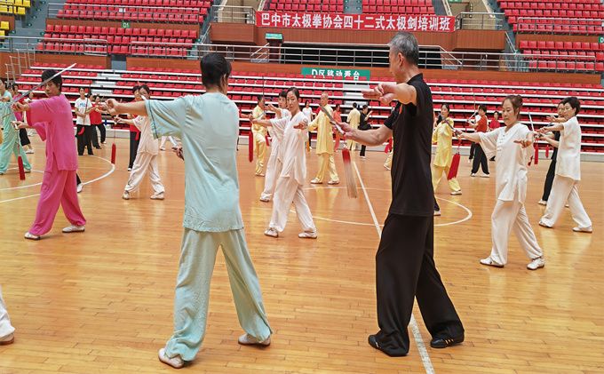 为了传承弘扬太极文化,提升各会员的拳术拳技,巴中市太极拳协会各分队骨干参加了由巴中市太极拳协会在巴中市体育馆组织的42式太极剑培训学习活动。