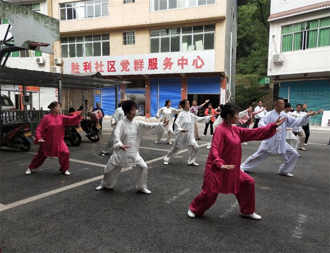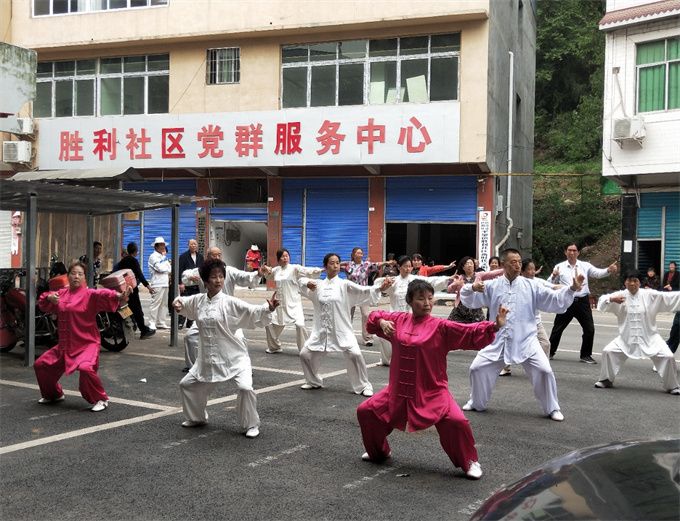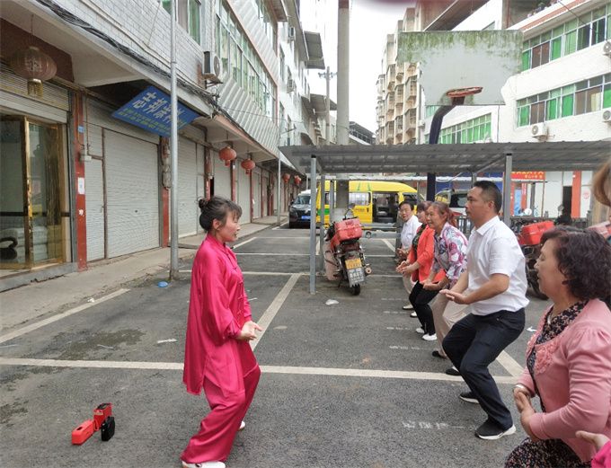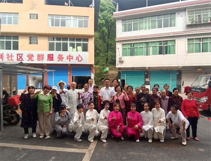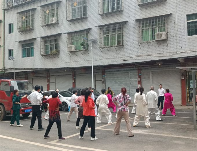 清脆辽亮的音乐划破了寂静的晨空,身着飘逸宽松太极服的队友们,伴随着音乐的节奏在居委会门前,献上了一場别开生面的太极文化盛餐。