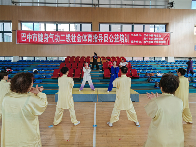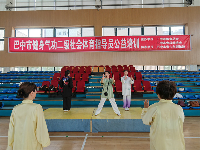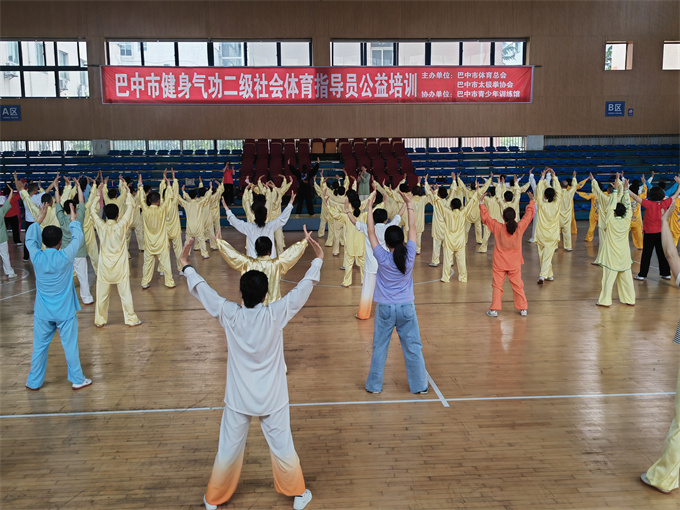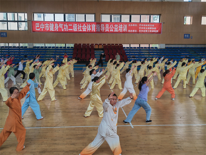 2025年4月20日,由市体育总会,市太极拳协会主办,市青少年体育馆协办的巴中市二级社会体育指导员公益培训在市青少年体育馆举行,来自南江,兴文经开区分会及协会各队选派的一百五十多名会员参加了培训。协会领导高度重视,协会会长刘云太、常务副会长饶华、副会长李碧芳、苟兴华、段佳林等出席了开班仪式。会长刘云太在开班仪式上致辞,强调健身气功习练意义与要求。