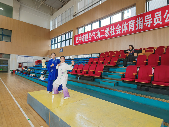 培训期间,常务副会长饶华,副会长段佳林全程陪同。健身气功辅导站具体负责本次培训工作,对健身气功八段锦和导引养生功十二法的功法功理以新编教材为教学蓝本,重点介绍功法源流、功理要旨、健身作用、学练要领、练功阶段、练功和教学须知等内容,特别是首次系统讲解功法三调操作方法和技术要点。气功辅导站站长张敬兰、冯晓华分别授课,张敬兰老师讲授健身气功八段锦,冯晓华老师讲解导引养生功十二法。 培训结束后,常务副会长饶华作总结发言。她充分肯定学员们的学习热情与成果,鼓励大家持续深化对健身气功的学习钻研,并提出殷切要求,希望学员们将所学知识带回各自区域,积极发挥社会体育指导员作用,带动更多群众参与健身气功习练,进一步推动巴中市健身气功项目的普及与发展。参加本期培训课程且技术考评合格,由巴中市体育局颁发二级社会体育指导员(健身气功)证书。