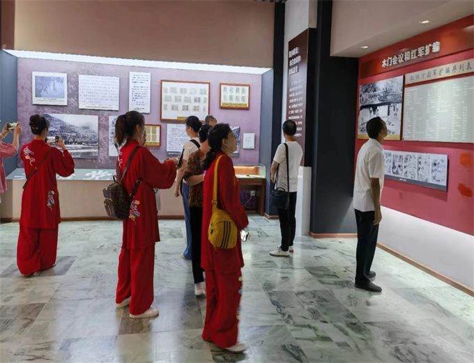 6月23日,为庆祝中国共产党建党103周年,市太极拳协会第二晨练队党小组、队委会,组织本队队员到川陕博物馆参观学习,开展组织生活。全体党员同志在党旗雕塑前举起右手重温入党誓词宣誓。队员们在队长、党小组长的带领下,参观了川陕苏区革命历史博物馆,馆藏文物2万余件和1800多万字的史料,再现了红四方面军的丰功伟绩,大家在各展室陈列的历史文物前仔细观看,感恩革命先烈为我们打下的红色江山,更坚定了不忘初心跟党走砥砺前行创辉煌的信念。在南龛公园展示表演了陈氏56式,杨式40式太极拳及双人,三人舞蹈。整个活动既庄严肃穆,又活泼热烈。