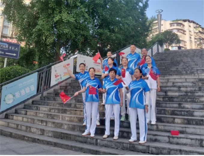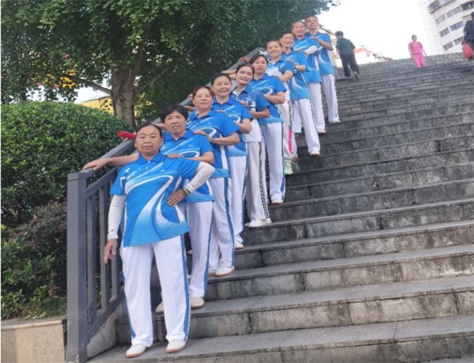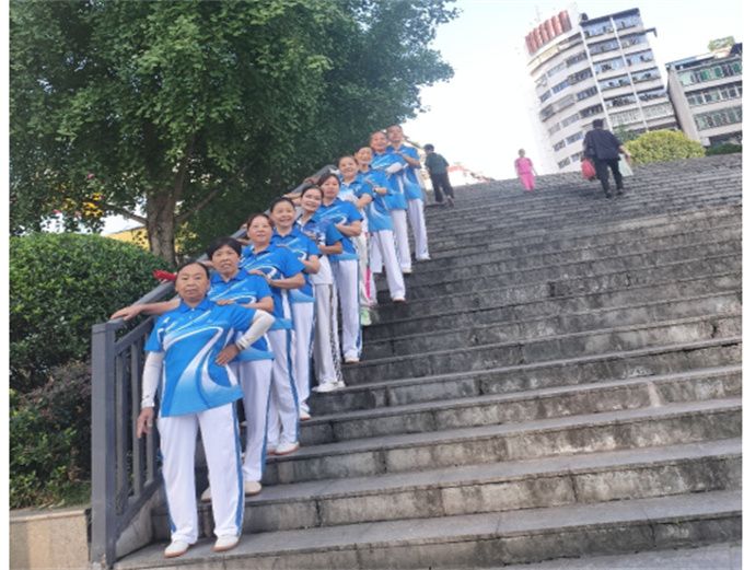 党小组长吴新明补充道:我们晨练队都是来自各个层面,不管来自何方,我们走到一起,就是一个团队,所以我们要发扬团队精神,顾大局,大家要合階友爱;要遵纪守法,坚持党的領导;特别是我们党员,要保持清醒的头脑,不要认为自已退休离岗了,更不要存在船到码头车到站的消极念头,应继续不拘形式的自学,不断为自己充电,充实精神食粮;坚持每天看中央、地方电视台的新闻联播,了解、关心国家大事,学习、领会二十大一系列文件精神。按党员标准严格要求自己,增强"四个自信,四个意识,两个维护",做到信念坚定,理想永存,思想常新,保持晚节。做到警钟长鸣守初心,夕阳虽红感党恩。