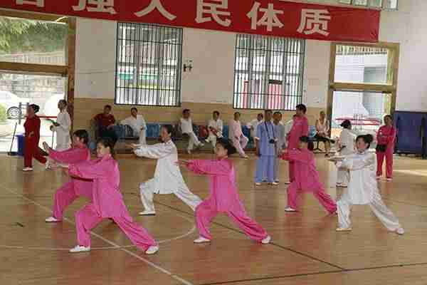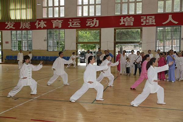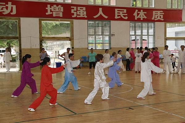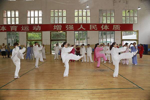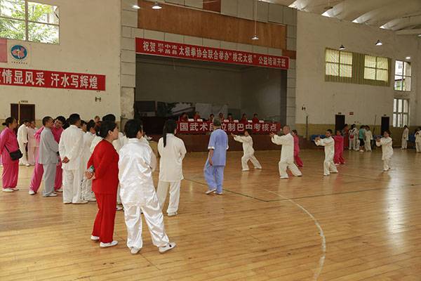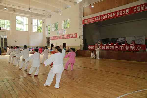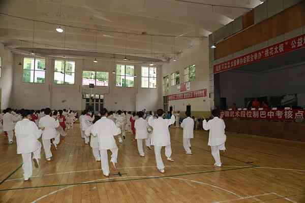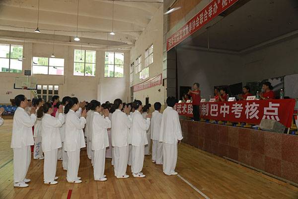 7月18日上午中国武术协会(巴中)段位考试点在平昌县中学篮球馆举行武术初级段位考评,来自平昌县机关、企事业单位、学校、社区、乡镇的108位太极拳爱好者考评前,集体演练了24式太极拳,之后的考评分组进行,经严格考评,全部通过初级段位一段位考评。
