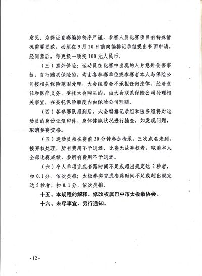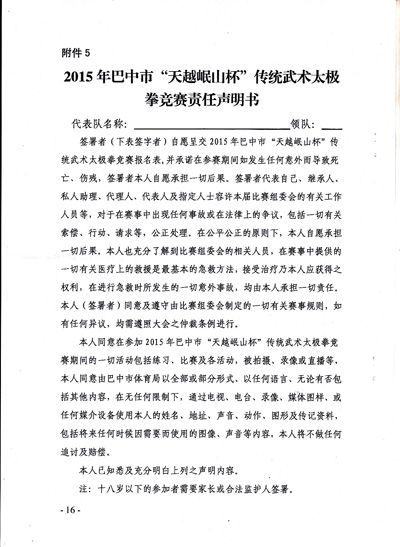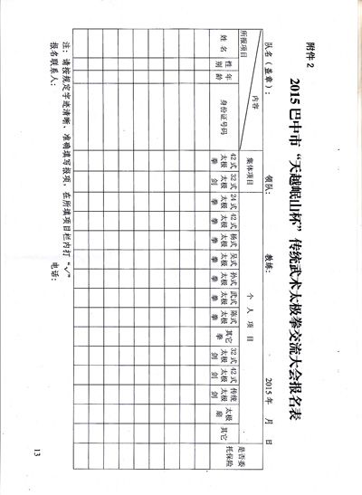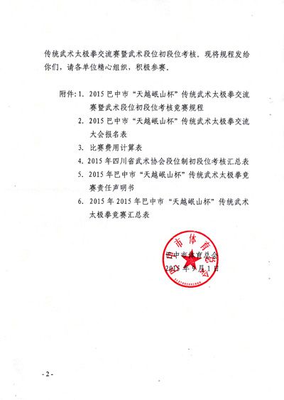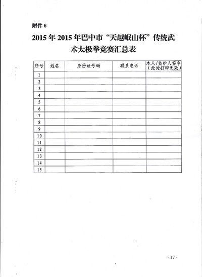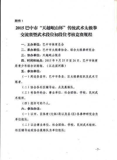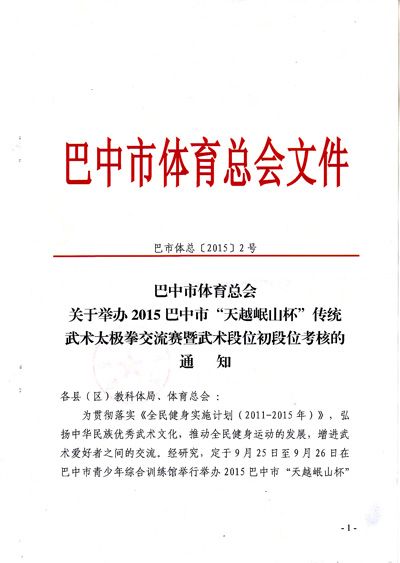 关于举办2015巴中市“天越岷山杯”传统武术太极拳交流暨武术段位初段位考核的通知