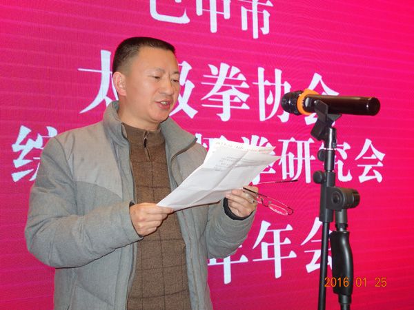 巴中市太极拳协会、综合太极拳研究会2015年年会于2016年1月25日在天越岷山饭店隆重举行。