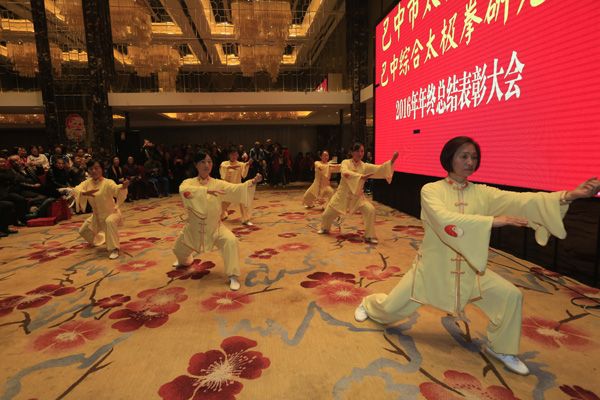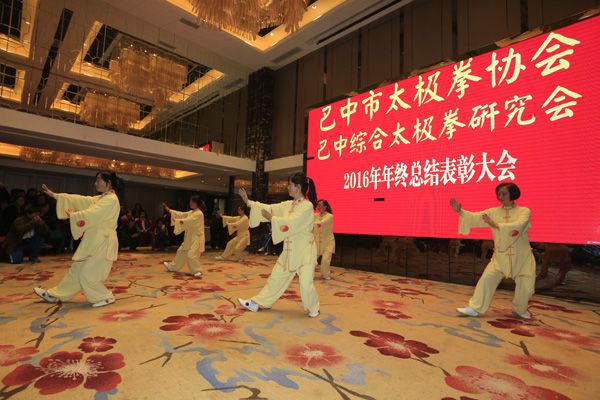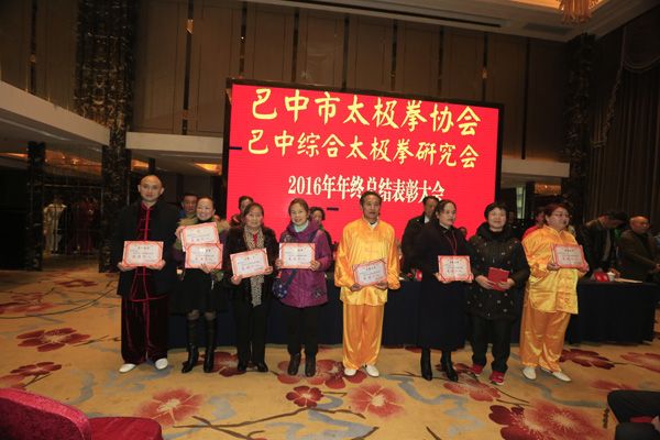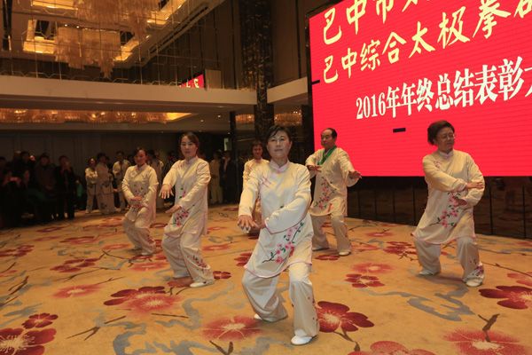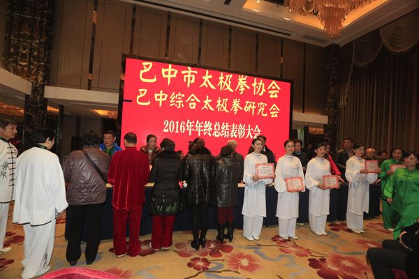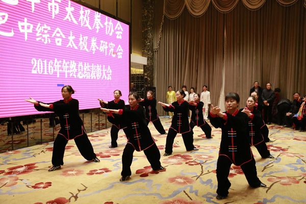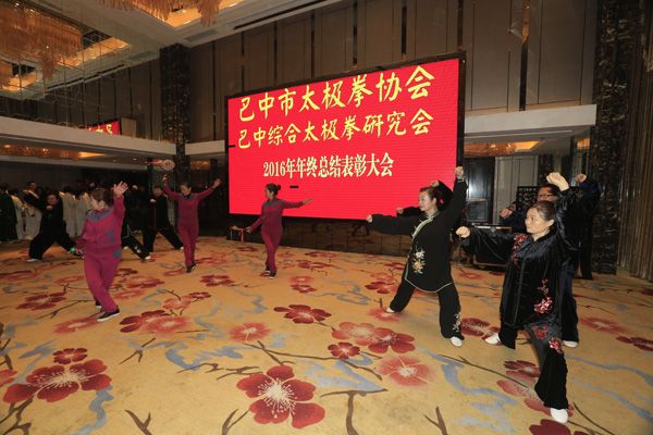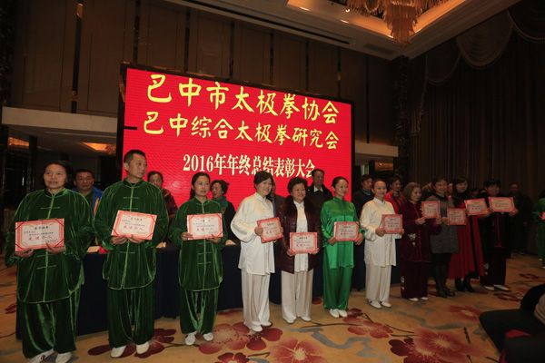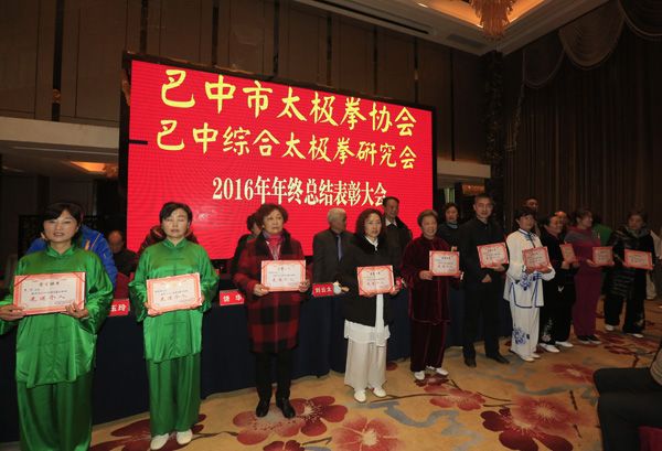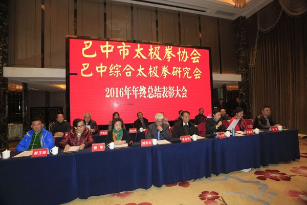 巴中市太极拳协会、综合太极拳研究会2016年年终总结表彰大会于2016年12月23日在天越岷山饭店隆重举行。