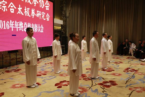 会议由副会长王珍敏主持;会长刘云太致辞;副会长兼秘书长郝玉铃受协会委托总结了2016年协会、综合研究会卓有成效的工作,展望了2017年协会的工作愿景;常务副会长饶华宣读《关于同意巴州区等太极拳协会为我会单位会员的批复》,授予巴州区太极拳协会、平昌县太极拳运动协会、南江县光武太极健身协会、南江县太极拳俱乐部、恩阳区综合太极拳研究会为我会单位会员,并举行了授牌仪式,副会长姜正礼代表单位会员作了表态发言;常务副会长饶华宣读《关于增设协会领导成员的通知》,增设姜正礼、何希珍、唐太明、谢忠、董仕德为我会副会长;常务副会长饶华宣读《关于表彰二0一六年度先进个人的通知》,表彰了一批积极开展武术“六进活动”、热爱太极拳、传播太极拳的先进个人;随后各县(区)单位会员代表队及我会13支太极拳辅导站、晨练队分别展演了魅力太极。