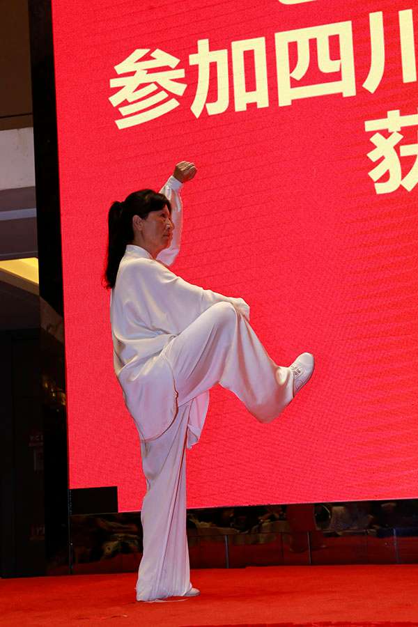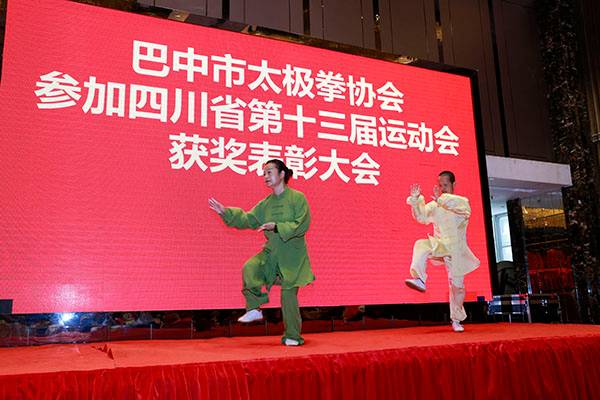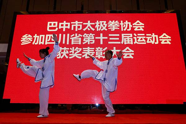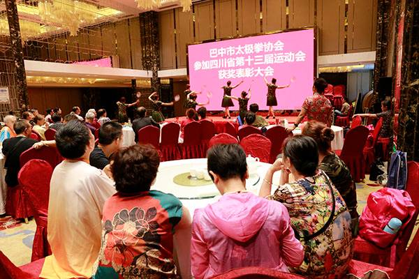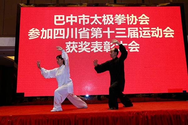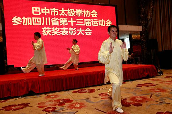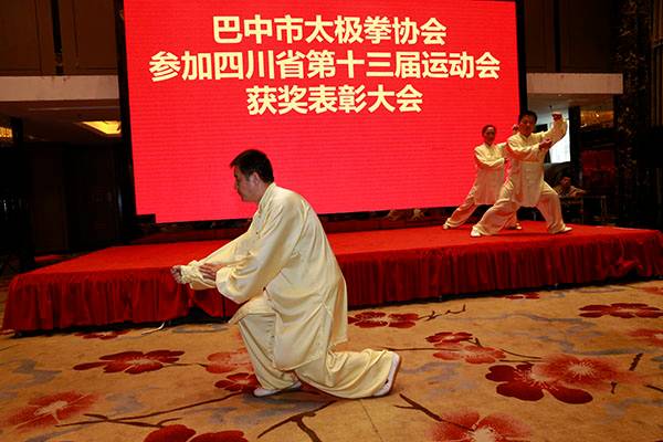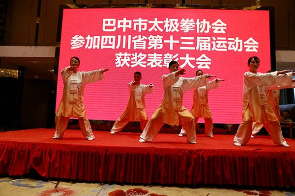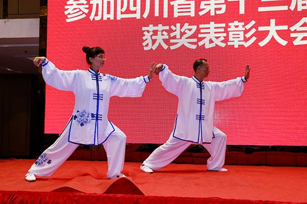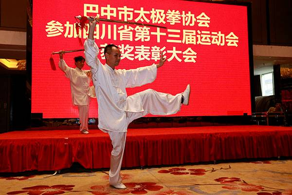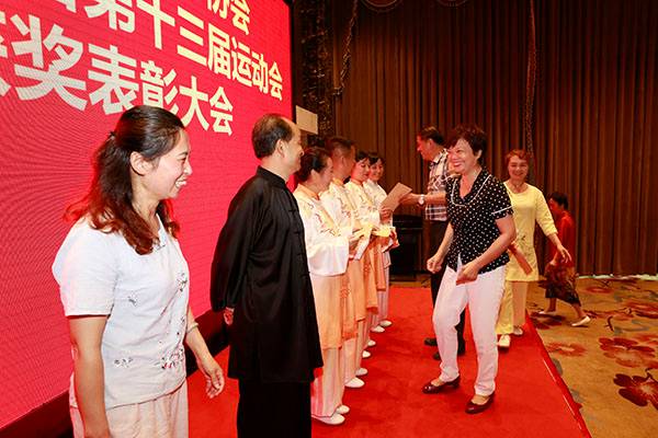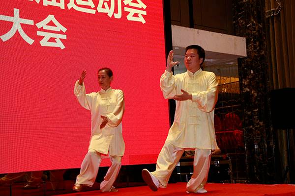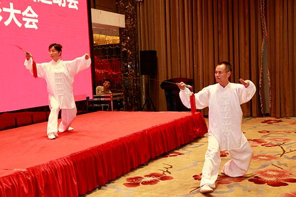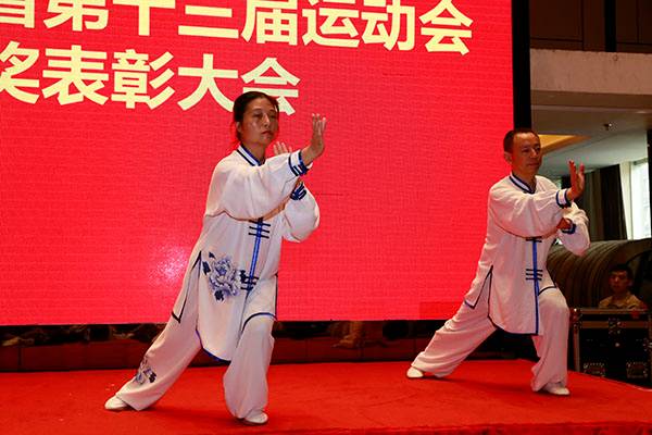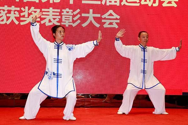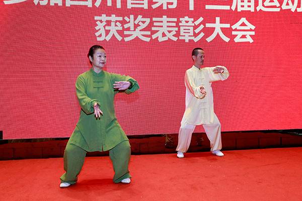 随后,参加省第十三届运动会群众项目——健身气功、“陈、杨、吴、武、孙”太极拳国家规定套路、42式太极拳国家规定套路、42式太极剑国家规定套路、柔力球的运动员分别作了汇报展演。