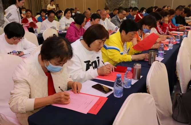 上午八时,大会在雄壮的国歌声中开幕。会议由副会长饶华主持,102名代表出席大会。与会代表审议并通过了由第三届副会长,秘书长郝玉玲宣读的第三届任期工作报告,审议并通过了副会长李碧芳作的财务工作报告,举手表决通过了巜巴中市太极拳协会章程》和巜会员代表选举办法》,大会以无计名形式投票选举出巴中市第四届太极拳协会理事会理事、会长丶付会长,监事会监事长和监事。新当选的巴中市太极拳协会会长刘云太作了不负使命再刨佳绩的表态发言!