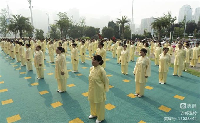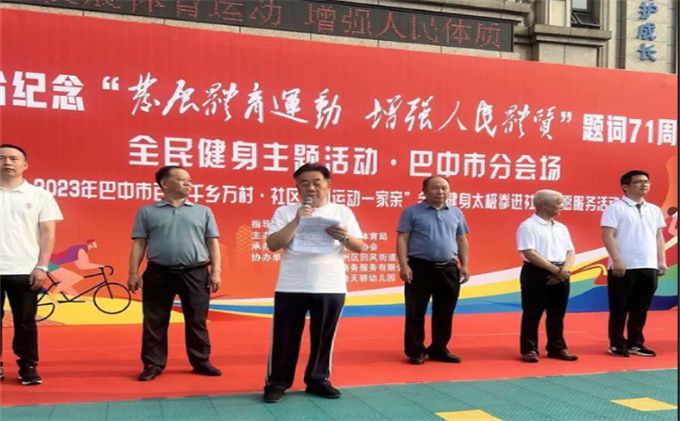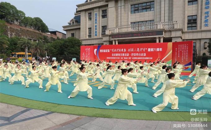 六月鲜花盛开姹紫嫣红,六月艳阳高照激情燃烧,10日清晨在北宸天骄金典天骄幼儿园广场,由市教育和体育局,巴中市体育总会主办,巴中市太极拳协会承办的纪念毛泽东主席“发展体育运动,增强人民体质”题词71周年全民健身主题活动正式启动。在旋律优美的“我们是太极传承人"的会歌声中,协会一百二十多名社会体育指导员从巴城四面八方共赴天骄,八时整,百城千乡万户社区同运动一家亲太极拳进社区志愿服务主题活动拉开序幕。
