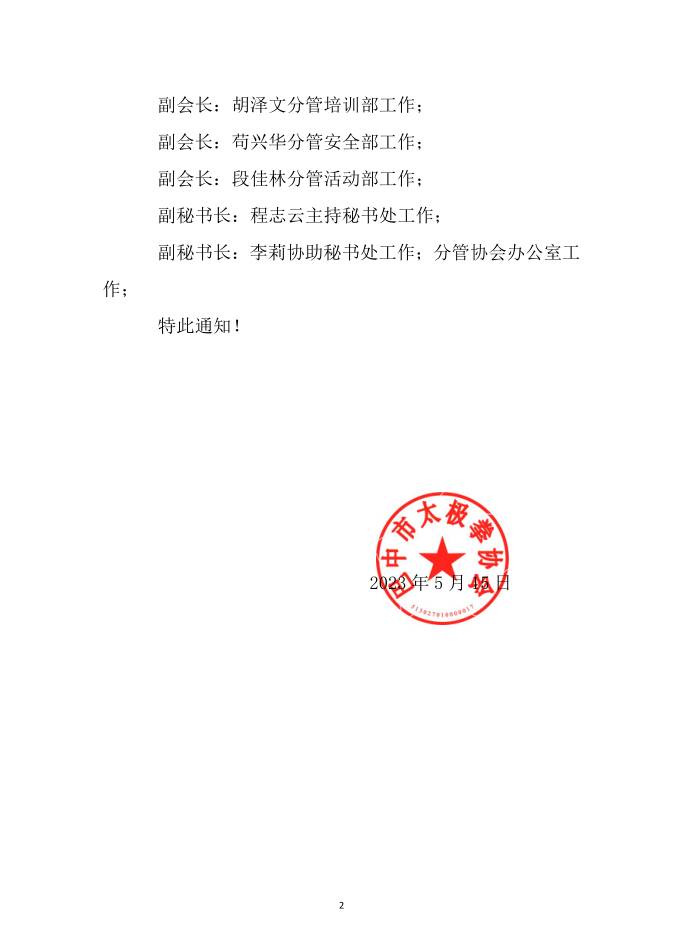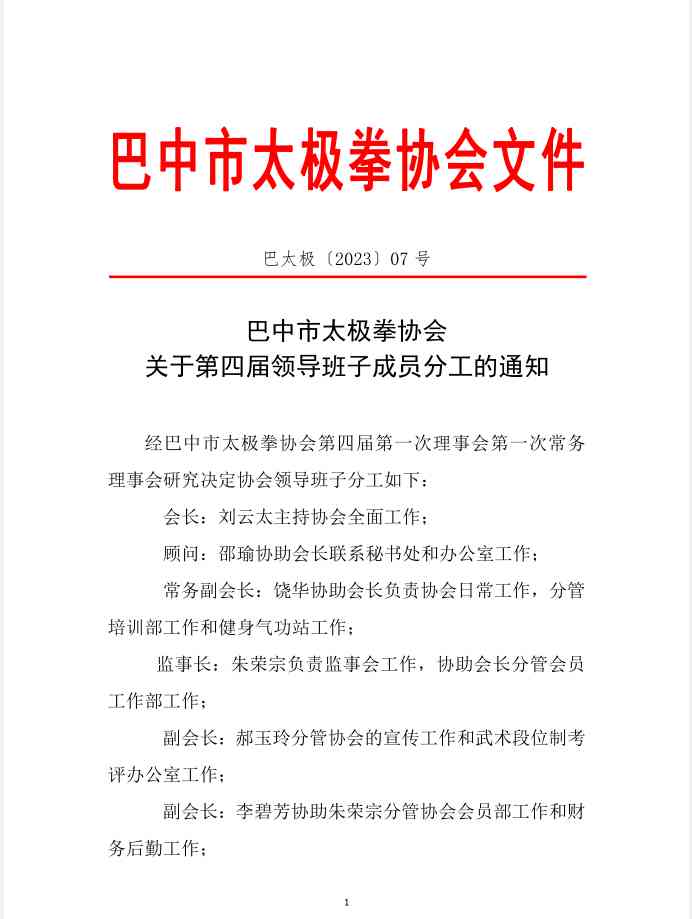 关于第四届领导班子成员分工的通知