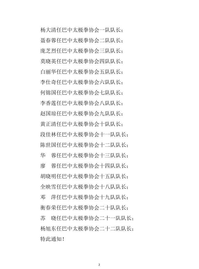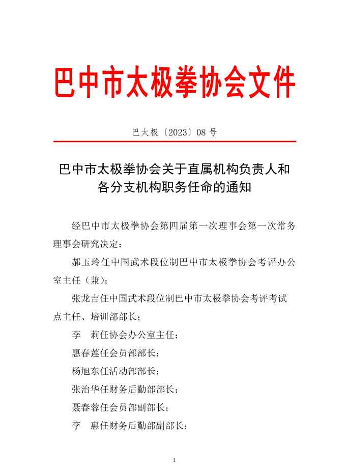 关于直属机构负责人和各分支机构职务任命的通知