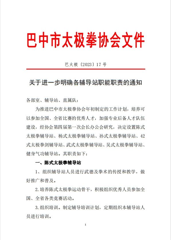 关于进一步明确各辅导站职能职责的通知 巴太极【2023】17号