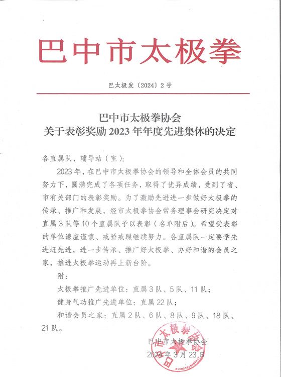 关于表彰奖励2023年年度先进集体的决定