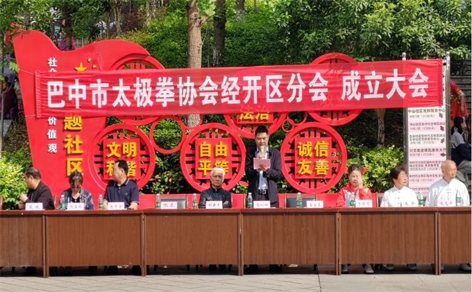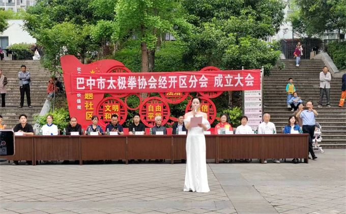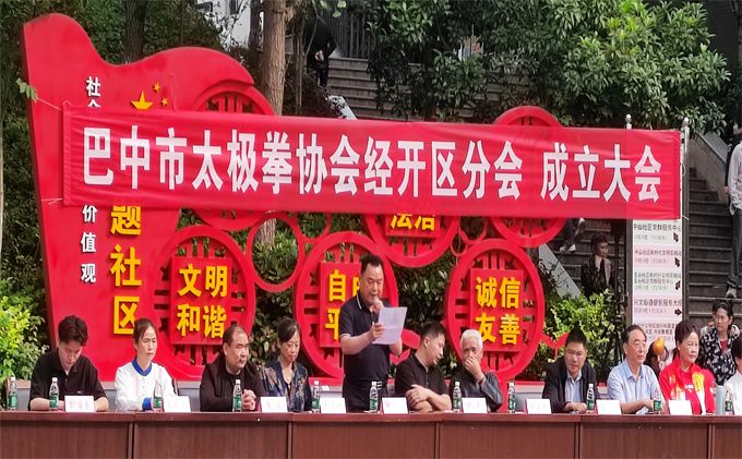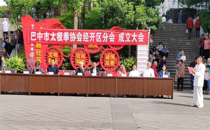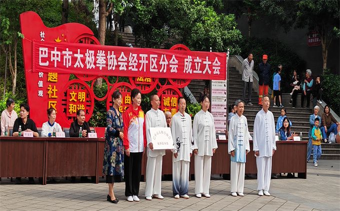 2024年5月12日,在兴文街道办事处广场,巴中市太极拳协会经开区分会正式成立了。太极拳协会直属二队前期在技术培训,组织构建等方面给予了大力协助和支持,兴文街道办事处为分会开展工作无偿提供了办公场地。