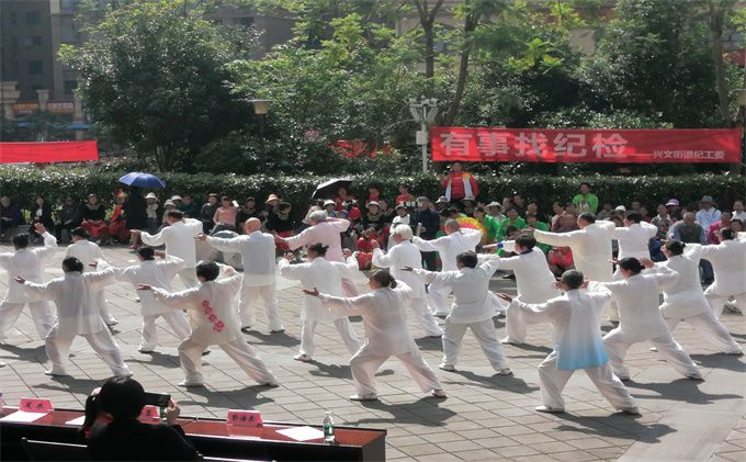 上午8点半钟兴文鼓乐队登场拉开帷幕,经开区街道领导及太极拳协会支部书记同几位正副会长到场参加。首先由太极拳协会监事长朱荣宗先生宣读分会成立批复文件,由副会长李碧芳,郝玉玲给分会授牌,协会会长刘云太先生讲话,经开区管委会社会事务局副局长张春先生,经开区兴文街道党工委委员,办事处副主任蒲以仁先生分别致辞,经开区分会会长苟和平先生代表分会班子发言。成立大会上直属二队,兴文分会太极队舞蹈队等单位表演了丰富多彩的文娱体育武术节目,围观群众对每个节目报以热烈的掌声。