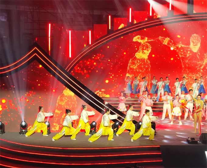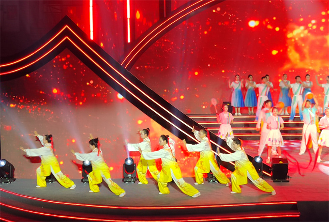 在演出中,当融合节目登场,太极表演段落成为连接传统与现代、刚健与柔美的重要桥梁。队员们于丰富多彩的节目元素中,动静相宜,开合有度,其行云流水般的动作、圆融贯通的气韵,既保留了太极拳的传统精髓,又在全新的艺术语境中焕发出别样生机,与其他表演元素相得益彰,共同构筑了一幅活力四射、和谐共生的全民健身画卷,赢得了现场观众的热烈掌声。