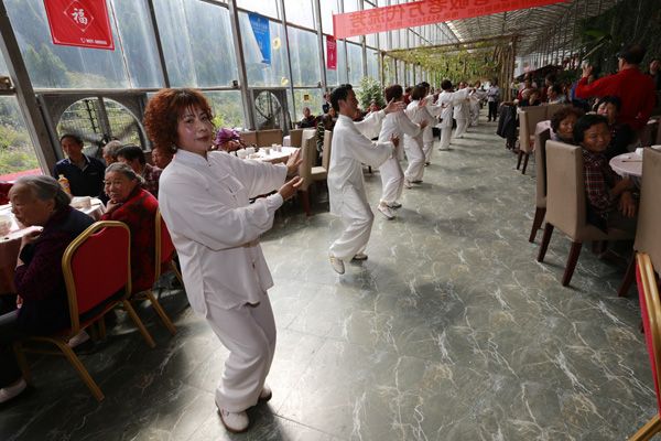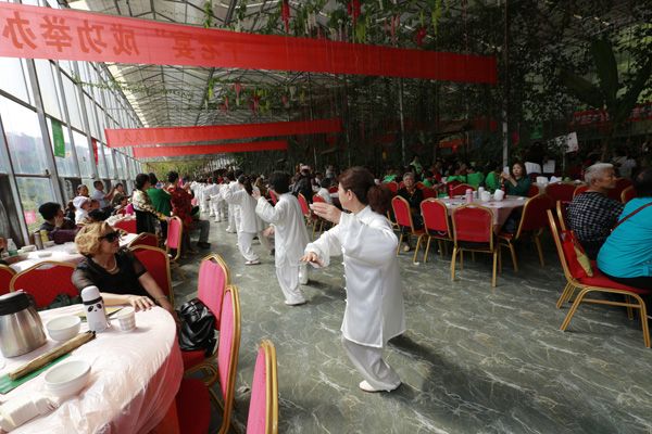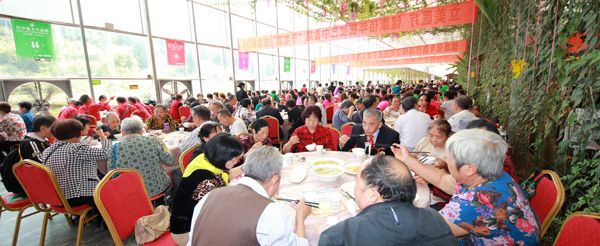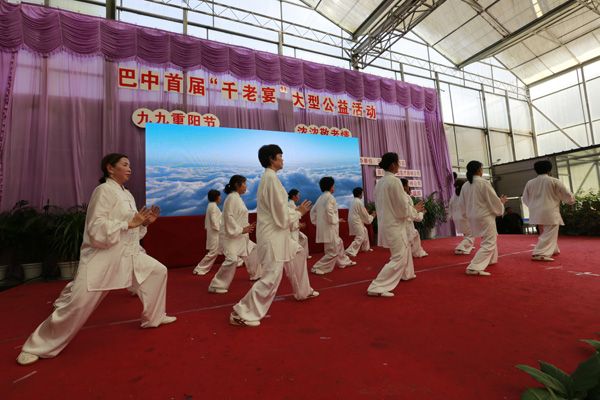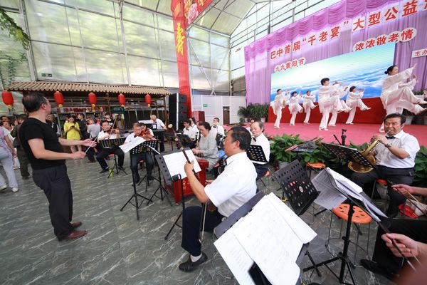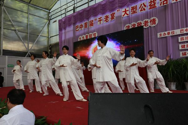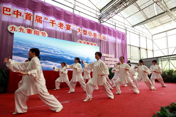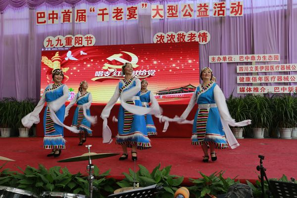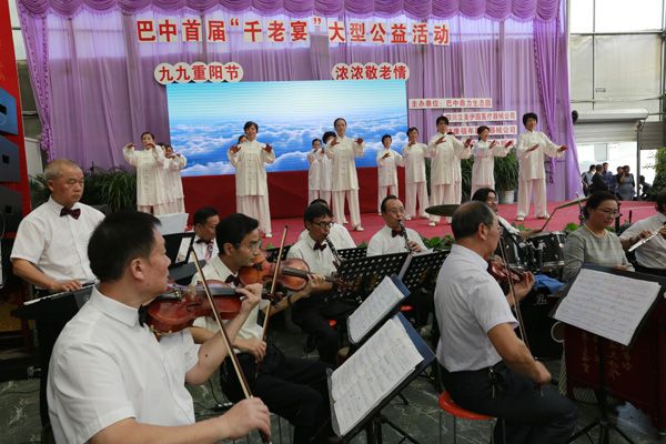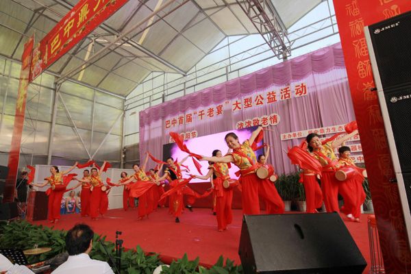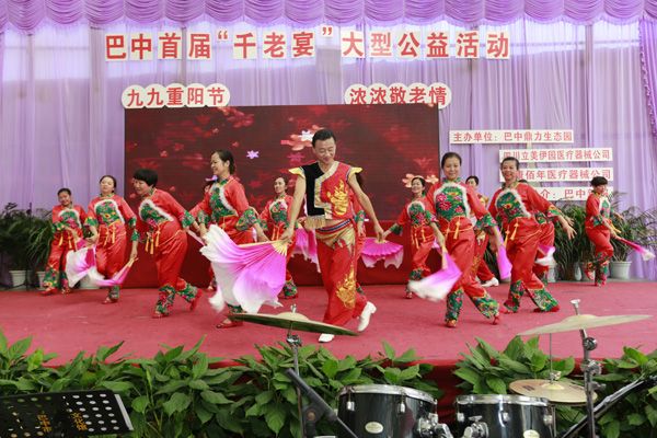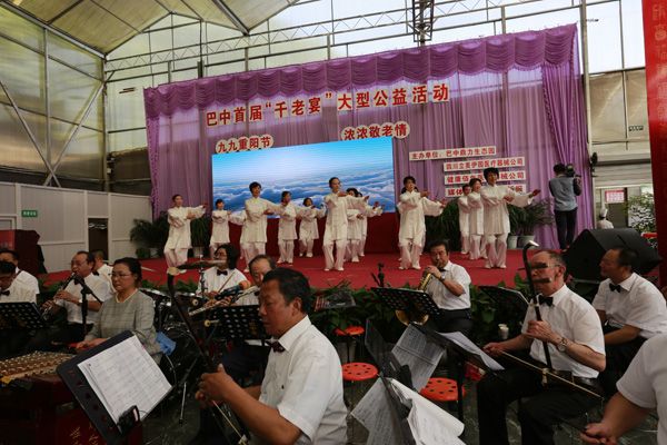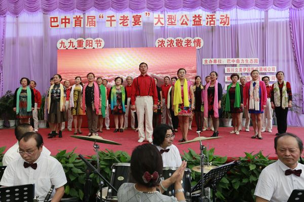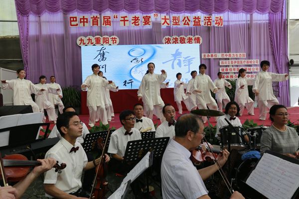 老人们一边欣赏由巴中市太极拳协会、文化馆、老年大学、红叶合唱团、舞蹈队表演的精彩腰鼓舞、太极拳、器乐合奏、舞蹈等节目,一边品尝免费的美味佳肴,尽享天伦之乐,他们欢声笑语,脸上洋溢着幸福甜蜜的灿烂笑容,回忆着美好往事,感叹着巴中巨变。