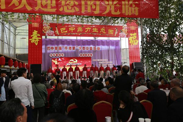 十月二十一日(农历九月初九)上午十时巴中首届“千老宴”大型公益主题活动在巴中鼎力生态园盛大开启,来自全市1400余名老年朋友欢聚在一起,话情谊、叙家常、品美食、度佳节。