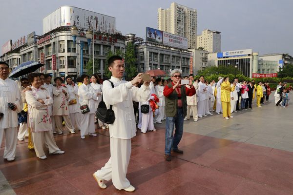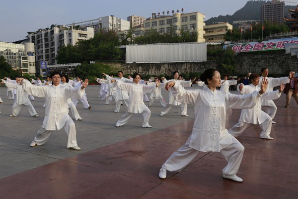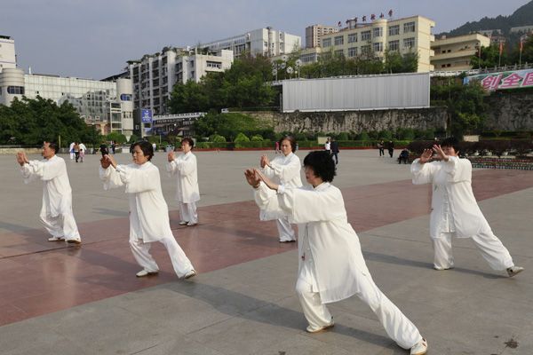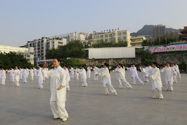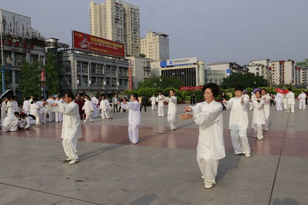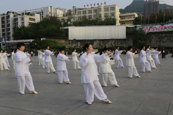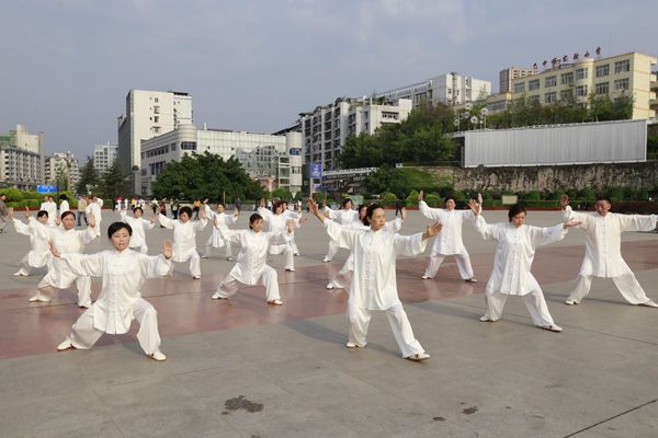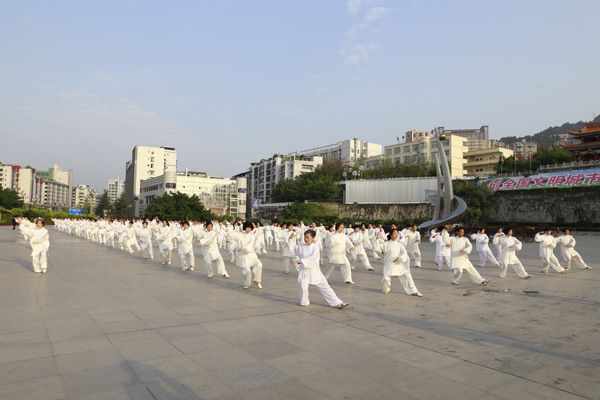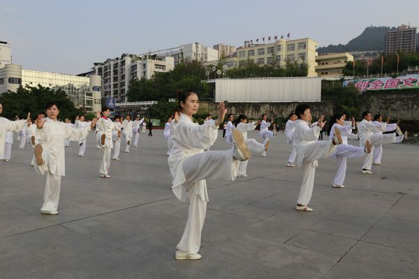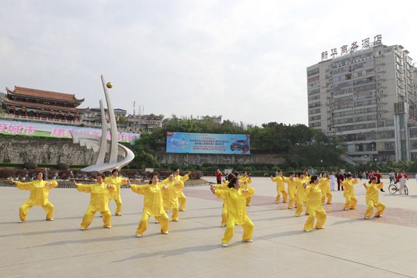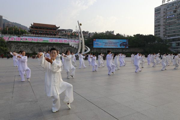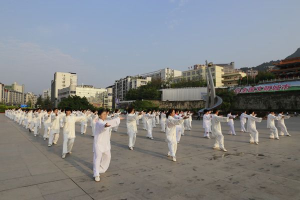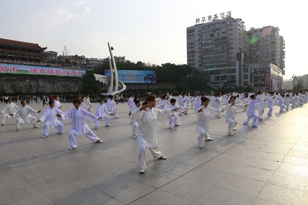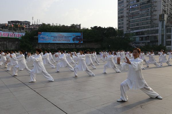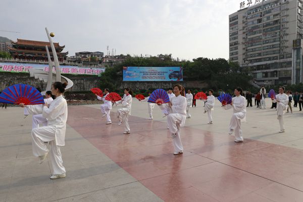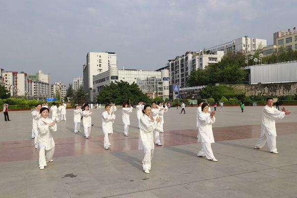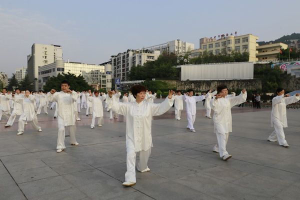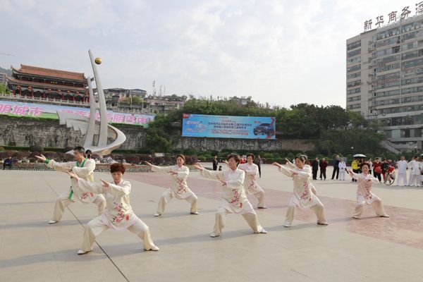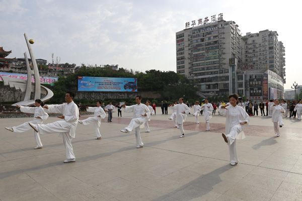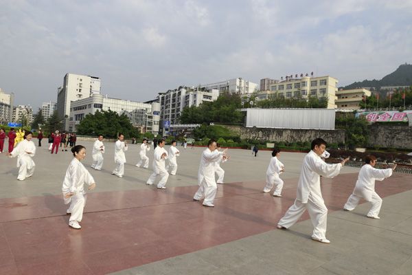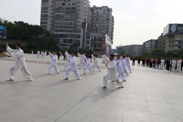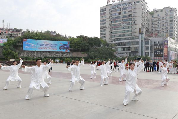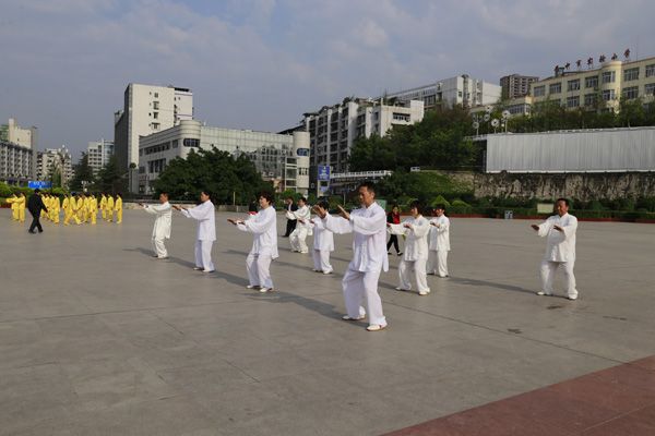我会在巴人广场举办“全民健身庆五一”太极演练活动