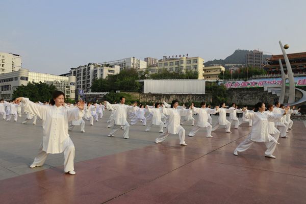 4月28日早晨“全民健身庆五一”太极演练活动在巴人广场隆重举行。