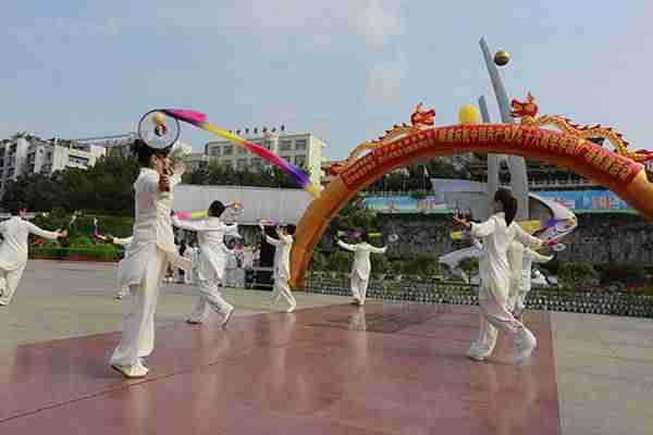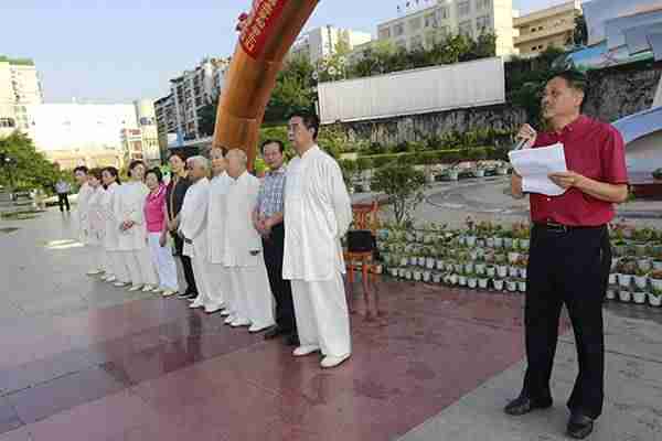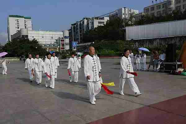 7时15分我会300余名会员沐浴着和煦的阳光,首先集体合唱了《没有共产党就没有新中国》,在优美的乐曲中,集体演练了24式太极拳、桃花太极拳,会员们个个精神饱满、热情高涨,动作协调一致,展现了我会会员昂扬向上的精神风貌。