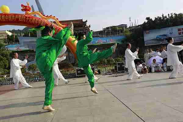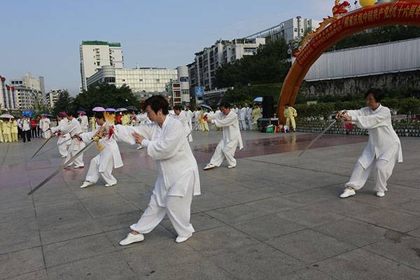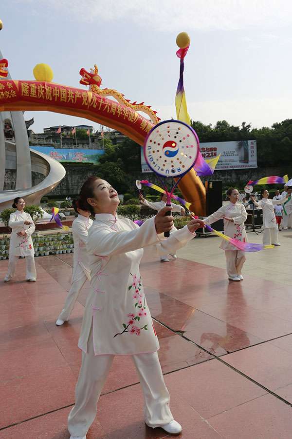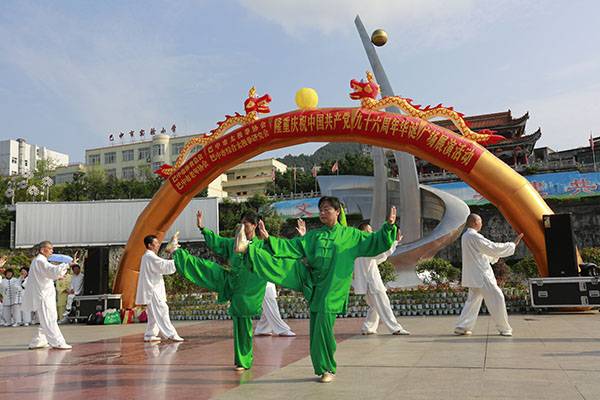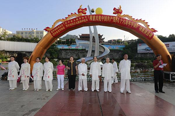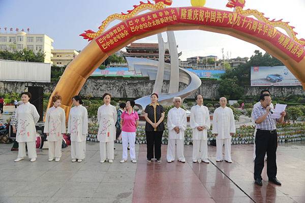 6月30日上午7:00至9:00由市体育总会、市老年协会、市太极拳协会、市综合太极拳研究会主办,市太极拳协会党支部承办的庆祝中国共产党96周年华诞广场展演活动在巴人广场隆重举行。市体育局副局长、体育总会会长鲁瑛出席。
