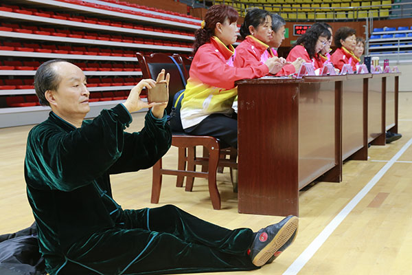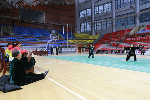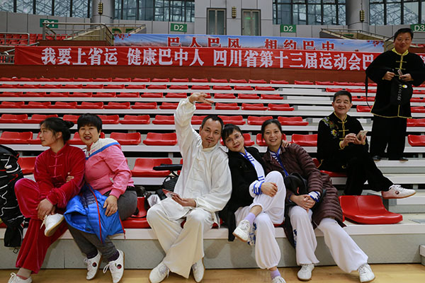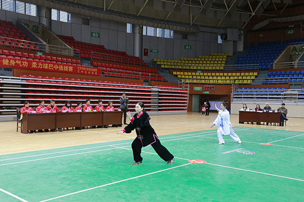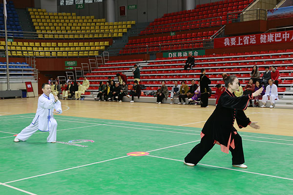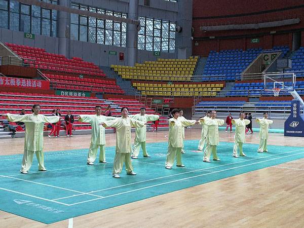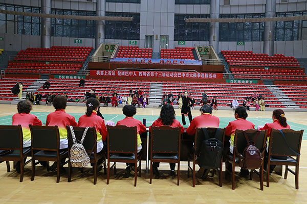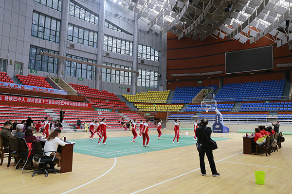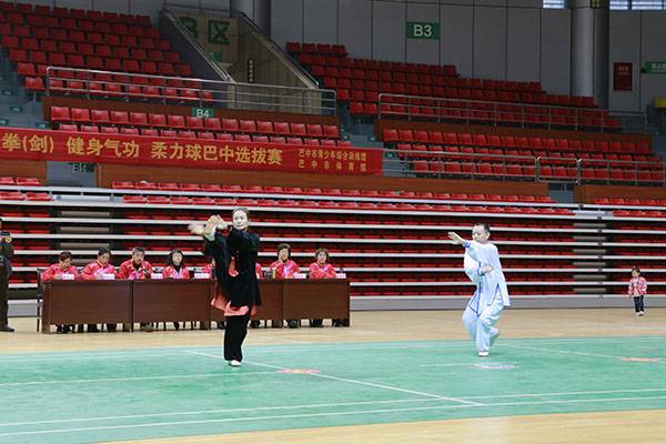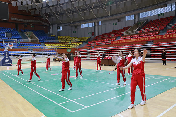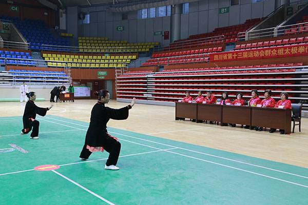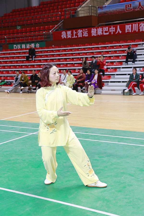四川省第十三届运动会群众组太极拳(剑)、健身气功、柔力球巴中选拔赛三月四日上午在市体育馆举行。市体育局副局长、市体育总会副会长鲁瑛岀席并担任监审组组长,市体育局体育科科长周健、会长刘云太组成仲裁组。