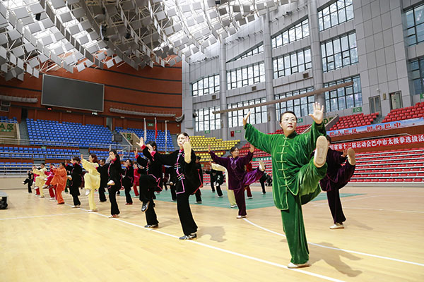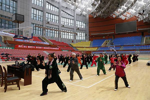 四川省第十三届运动会太极拳(剑)巴中参赛运动员培训班三月五至八日上午在市体育馆举行。