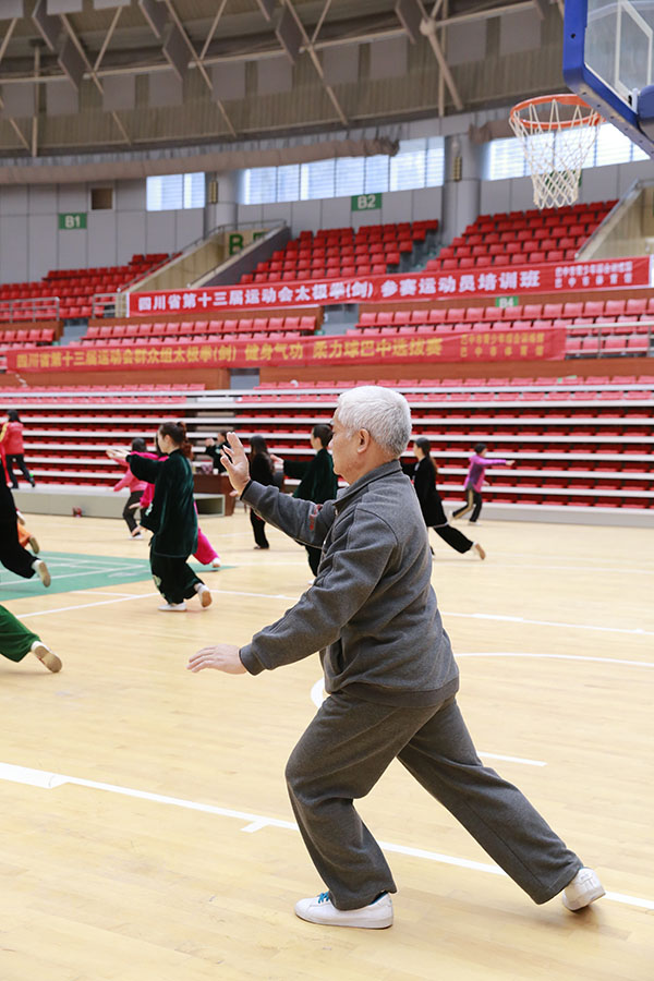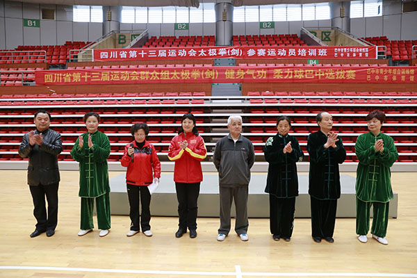 我会参赛运动员、各直属队骨干及平昌县、恩阳区太极拳协会的58名运动员分别接受了“陈、杨、吴、武、孙”式太极拳、42式太极拳、42式太极剑七个国家规定套路系统、规范培训。