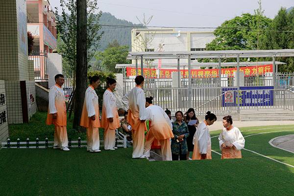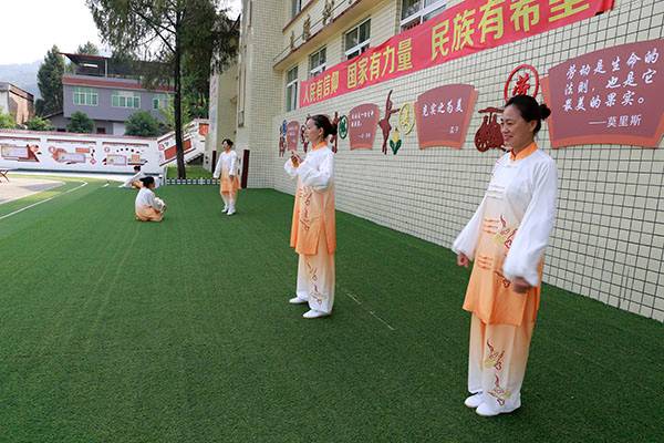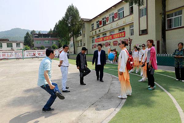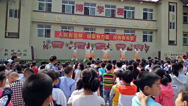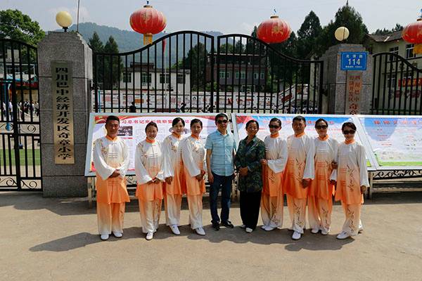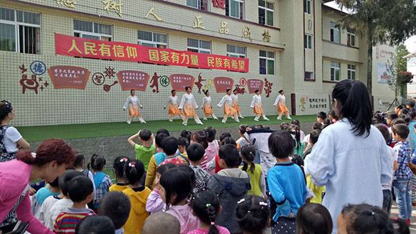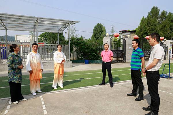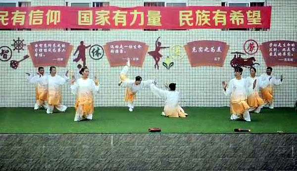这支即将代表巴中市参加全省第十三届群众运动会的队伍是近期第三次走进校园。为了不占用同学们的上课时间,课间操三十分钟,全校四百多名师生齐聚大操场,由张校长主持介绍,八位参赛运动员进行了导引术十二法的功法展示,接着又表演了自编气舞:巴山韵。烈日之下,表演者神形兼备,动作优美,全体师生认真观看,秩序井然。在整洁的校园里师生一起观看了健身气功功法展示后,几位家住巴城的老师立即主动与张敬兰、冯晓华两位老师联系,利用双休日参加培训。经开区机关党委杨书记对健身气功进校园活动给予充分肯定和高度评价,学校王校长更显激动,替孩子们感谢大家,这项活动有益于青少年身心健康,要在学校师生中大力推广和学习,并热情相邀,武术进校园,“六一”再相见。